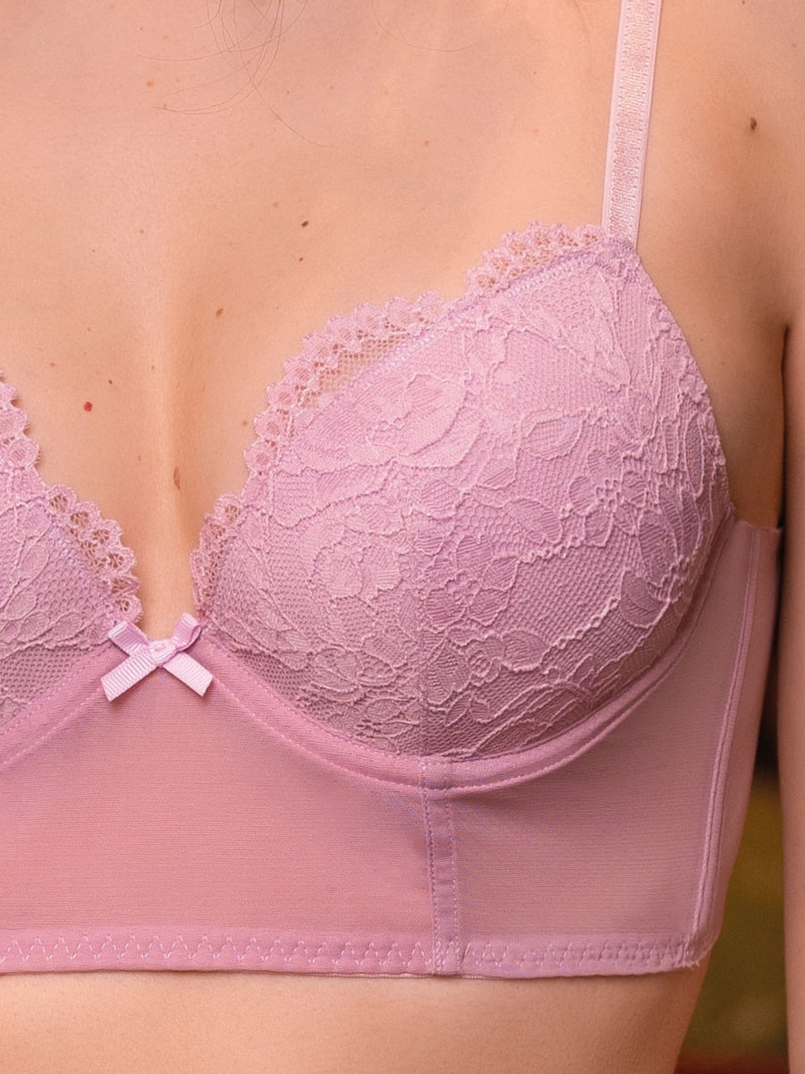 Questo bustino è la scelta perfetta per chi desidera sostegno e comodità. Le coppe imbottite sono rivestite da un pizzo floreale impreziosito da uno smerlo delicato che incornicia il décolleté.Sostegno e comfort