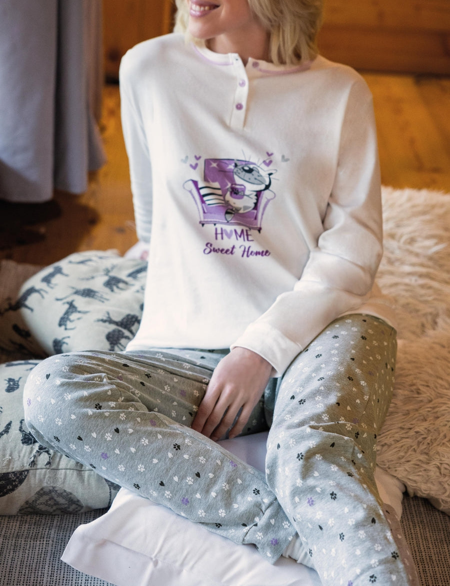 Pigiama serafino - CREMA/BLUE - 7 - CREMA/BLUE - SV15