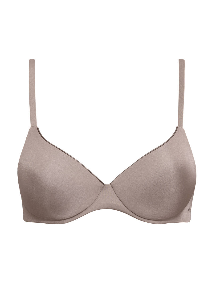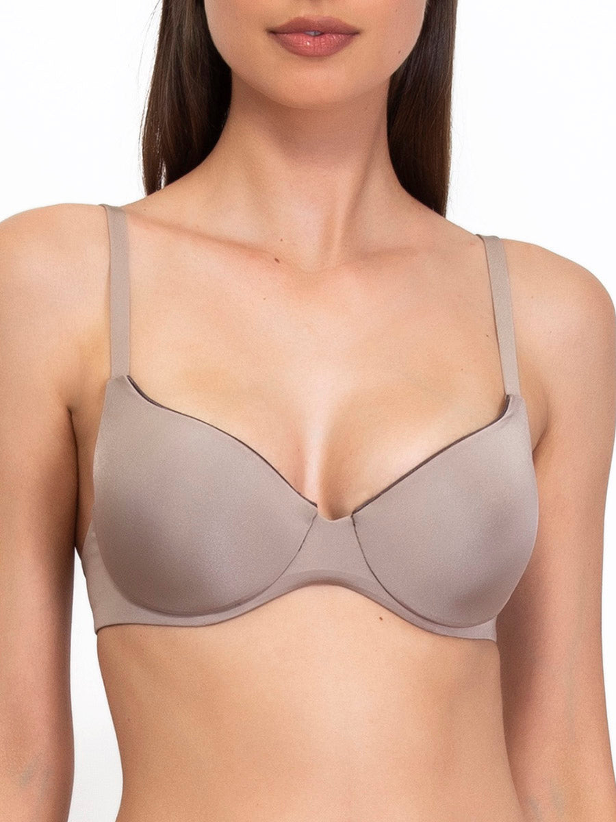 Reggiseno preformato con ferretto e coppe imbottite realizzato in microfibra stretch semilucida con un elegante profilo sul decoltè. Un modello sofisticato e con spalline ricoperte e cuciture invisibili.