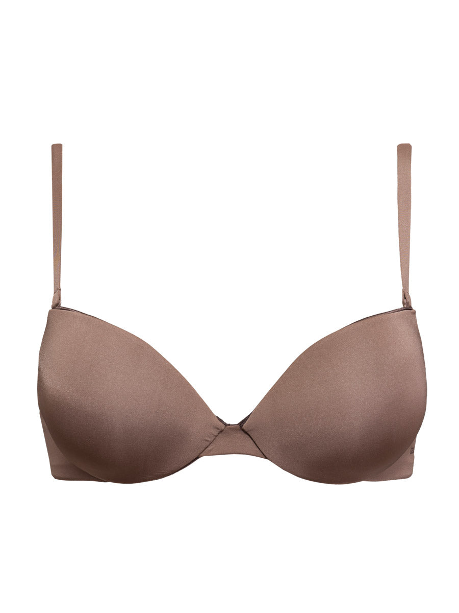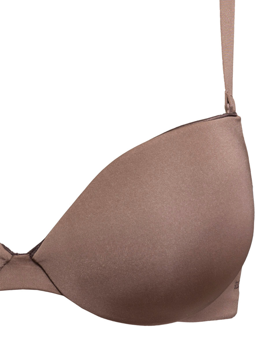 Reggiseno preformato con ferretto e coppe gel realizzato in morbidissima microfibra semilucida con eleganti profili sulle coppe. Il modello è completo di spalline intercambiabili e cuciture invisibili.