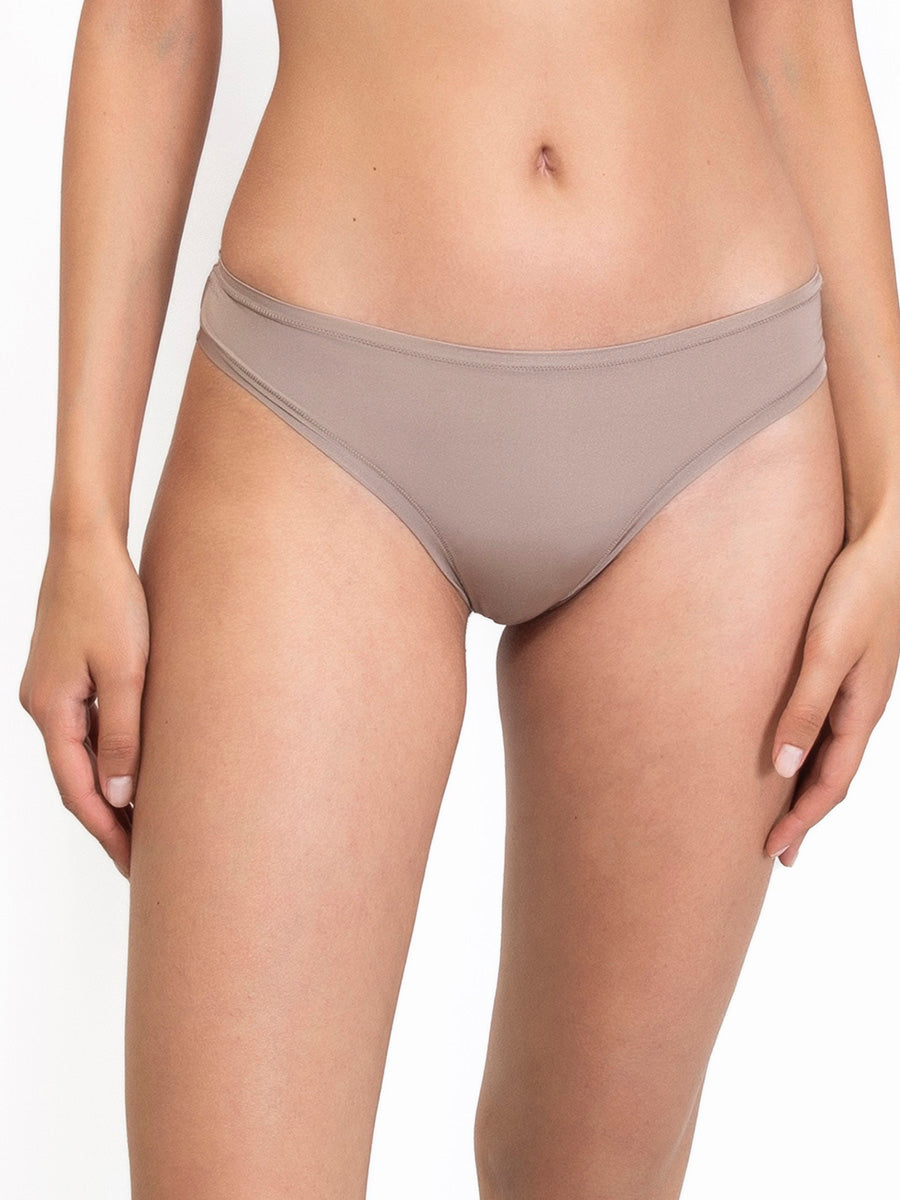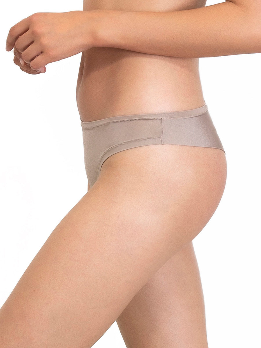 Brasiliana realizzata in morbidissima microfibra semilucida. Il retro è doppiato per evitare inestetiche cuciture sui bordi. Modello con cuciture invisibili.