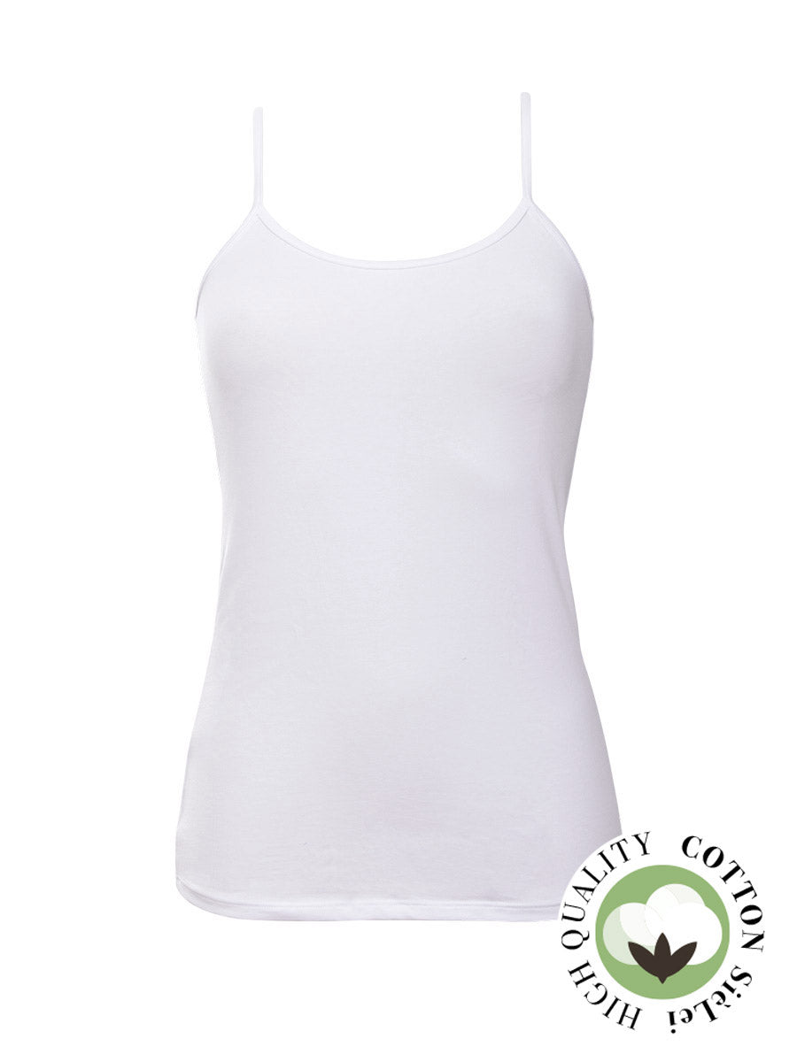 Canotta semplice con spalline sottili in cotone bio. Morbida e versatile, da usare anche come sottogiacca, è disponibile in 5 colori