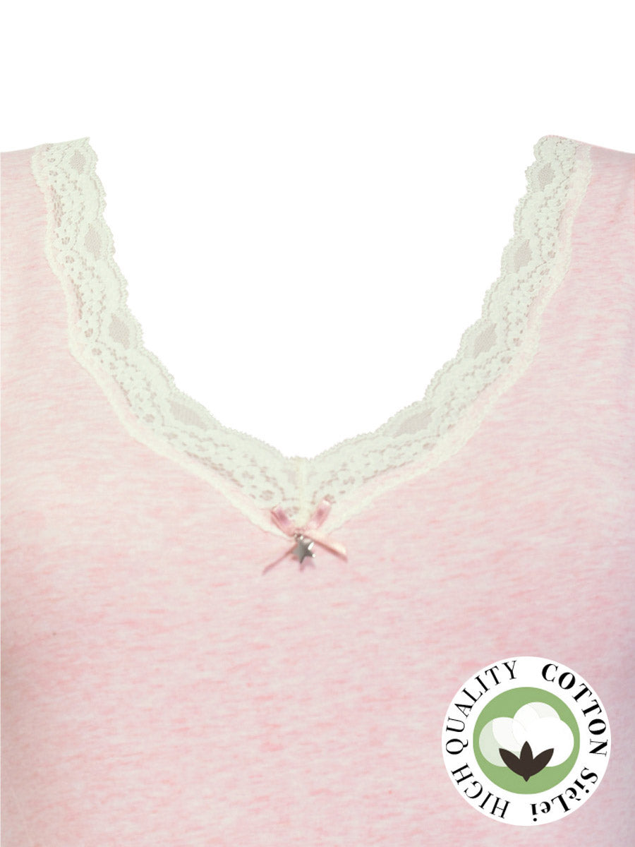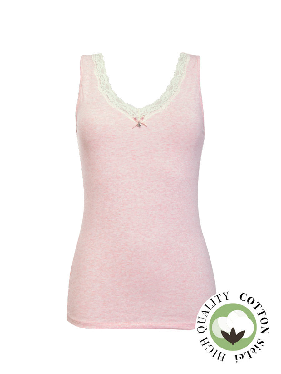 Canotta spalla larga, scollo a V con pizzo - ROSA MELANGE - 1436