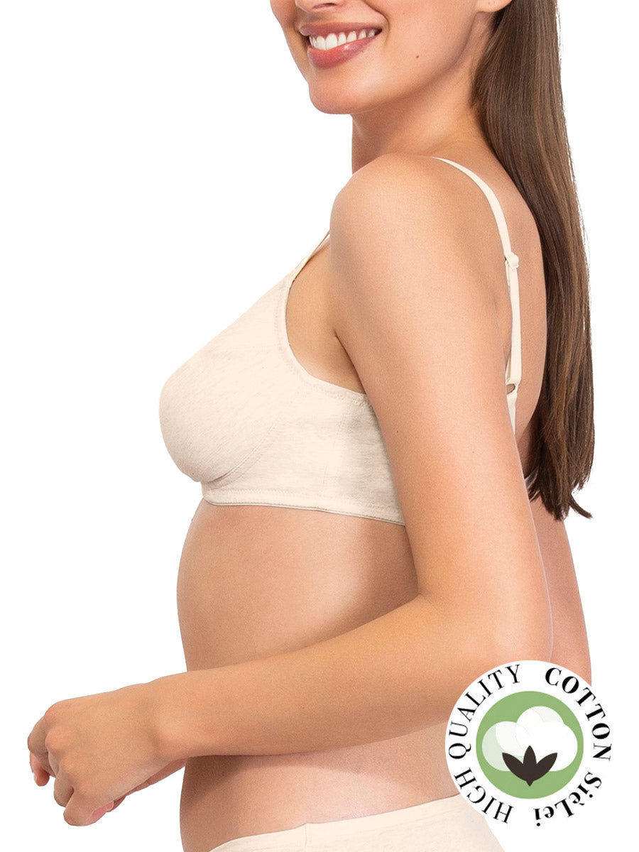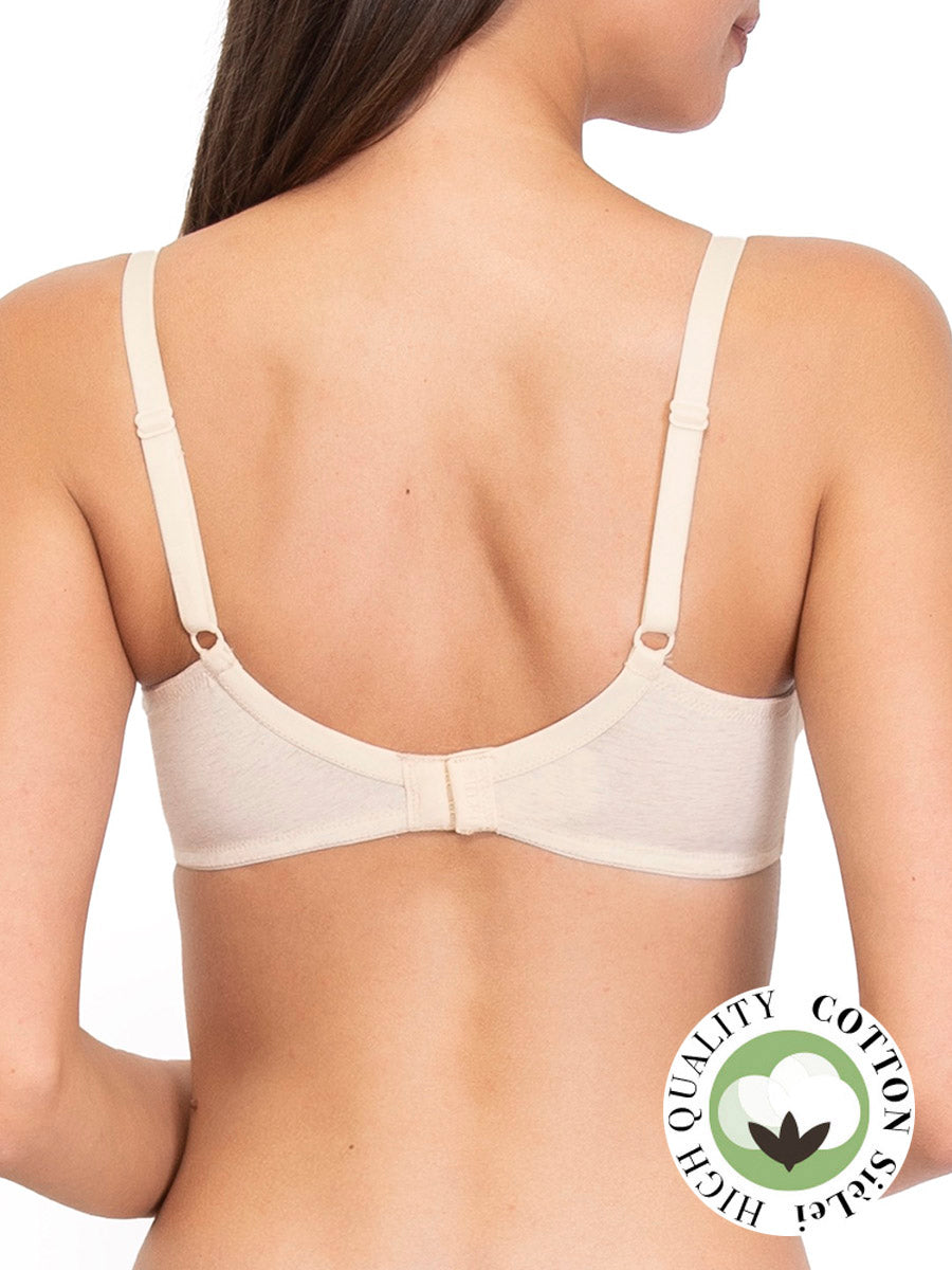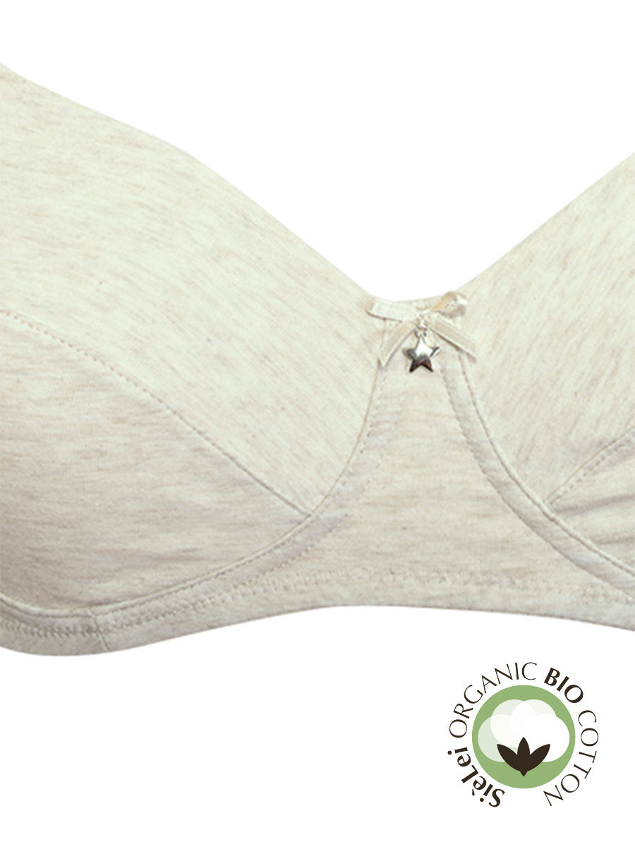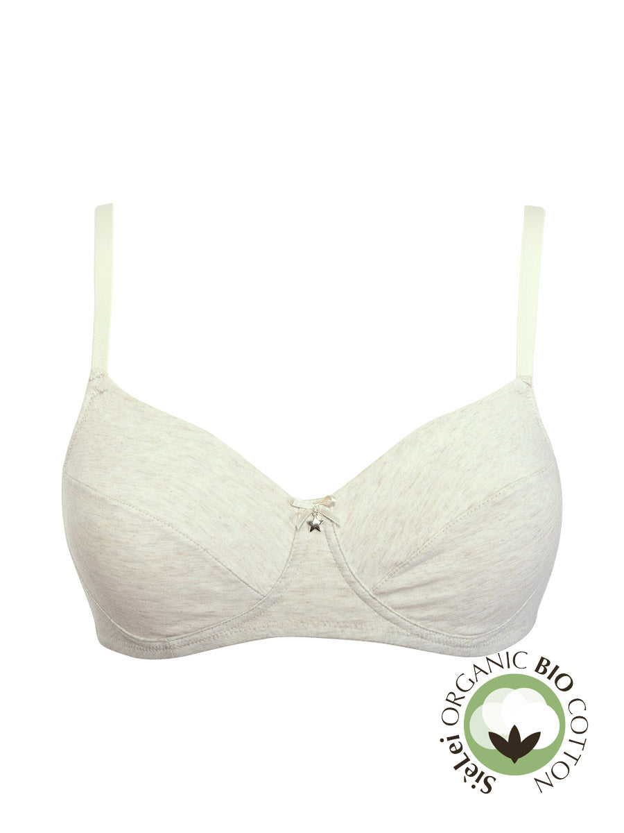 Reggiseno francese senza ferretto; dona un sostegno perfetto ed è molto confortevole. In cotone bio. Disponibile in 5 colori e in coppa B, C e D