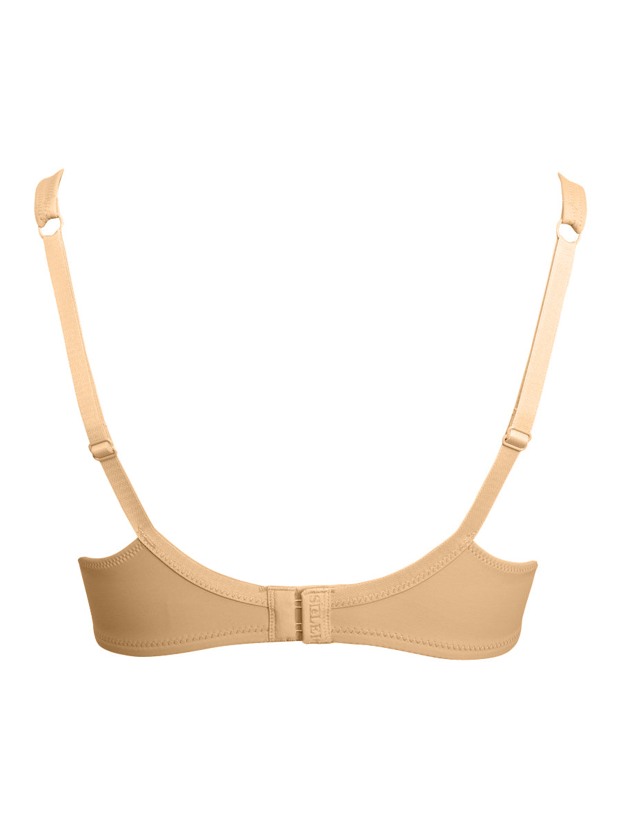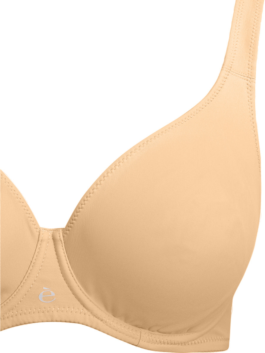 Reggiseno con ferretto in morbida microfibra, con rinforzo laterale sulle coppe per sostenere senza costringere. Le coppe sono senza imbottitura e modellano il seno senza aumentarne il volume.