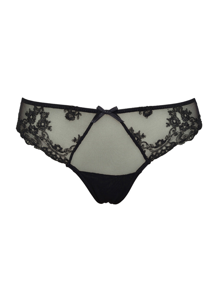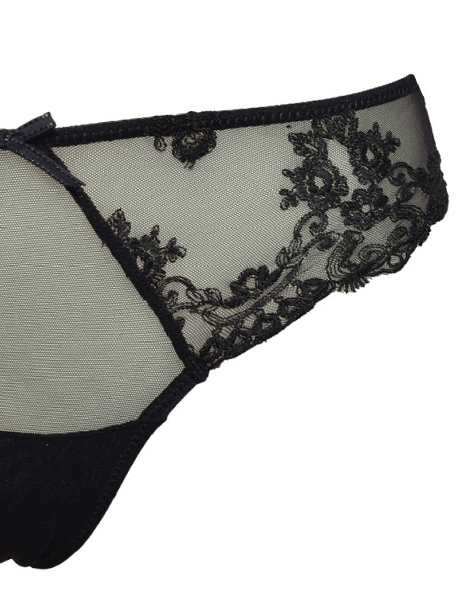 Un perizoma confortevole e dal gusto retrò grazie ai seducenti ricami floreali. Realizzato in morbido tulle e caratterizzato da un raffinato fiocchetto anteriore tono su tono. Tassello 100% cotone.