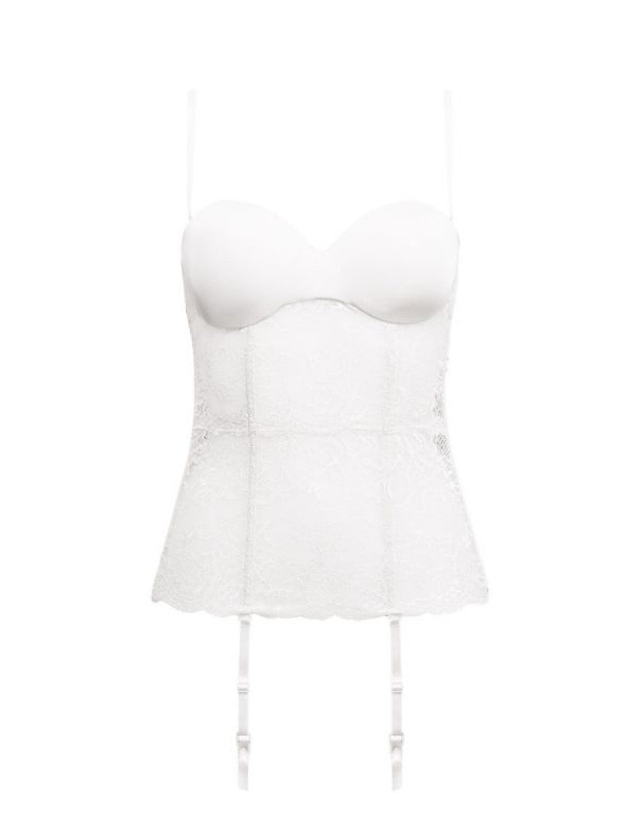 Guepiere con coppe graduate, ferretto invisibile, spalline e reggicalze removibili - BIANCO - 1971