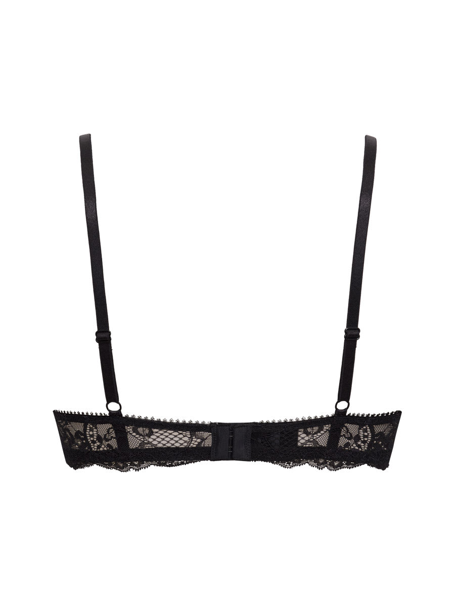 Push-up con ferretto e coppe graduate realizzato in microfibra stretch semilucida abbinata ad un raffinato pizzo floreale.