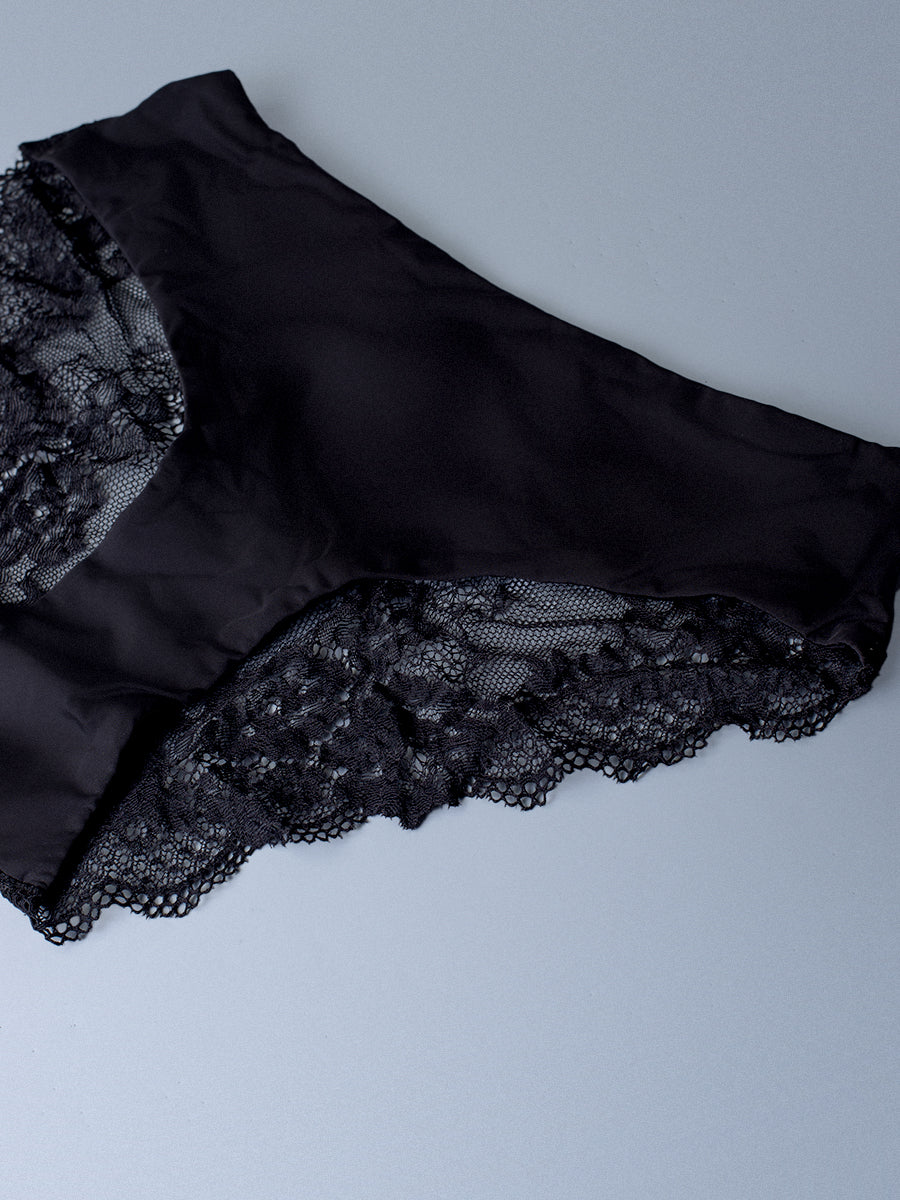 Design Elegante: microfibra doppiata sul davanti e pizzo smerlato sul retro per un look sofisticato.