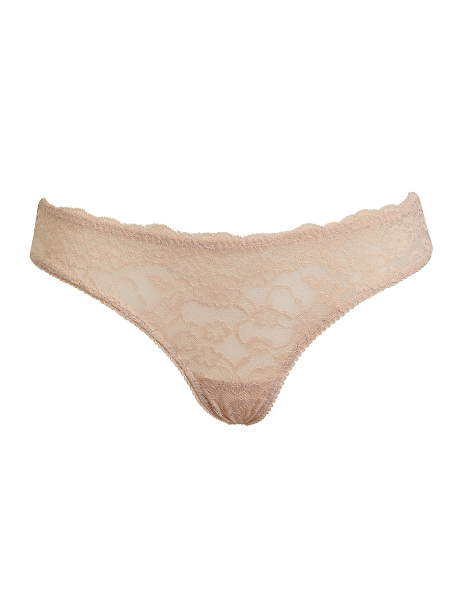 Slip realizzato in raffinata balza di pizzo stretch con cordonetto in rilievo a motivo floreale. Tassello 100% cotone.