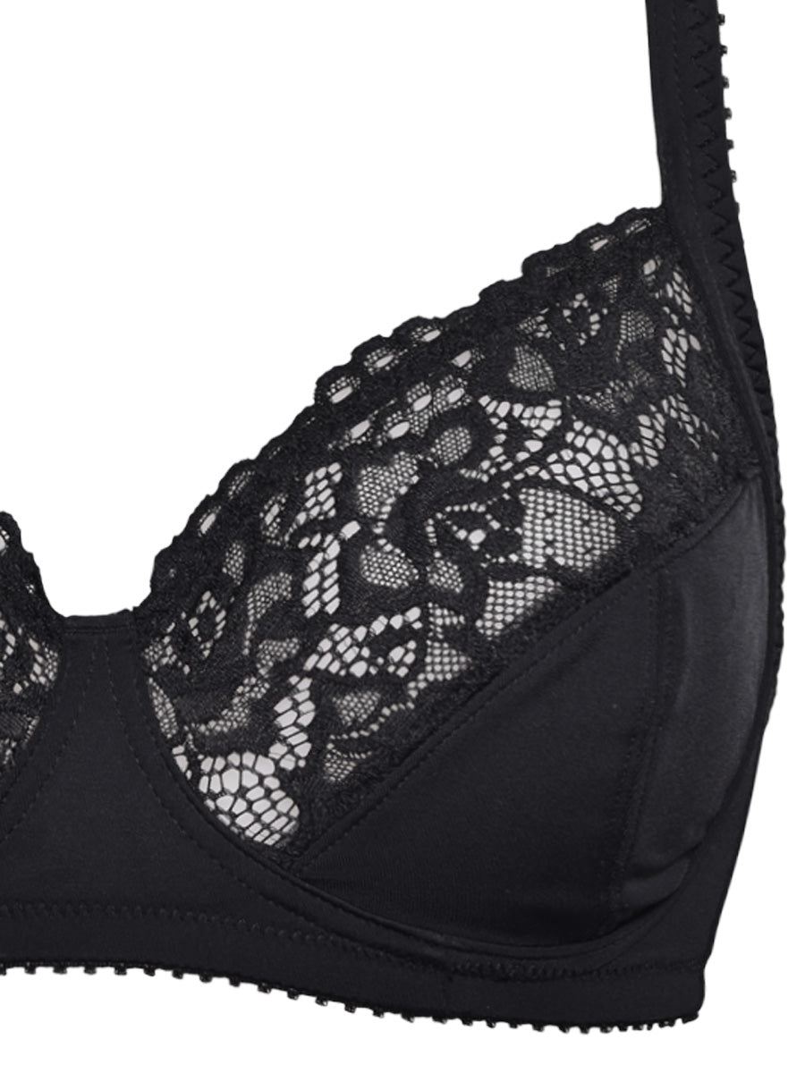 Reggiseno francese senza ferretto, realizzato in morbido pizzo e foderato in cotone, dalla vestibilità impeccabile. Senza imbottitura e senza ferretto, sostiene e modella il seno con delicatezza.