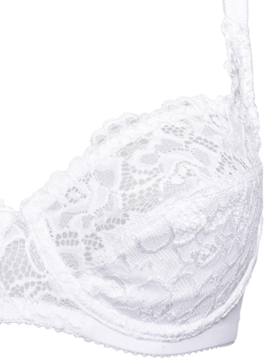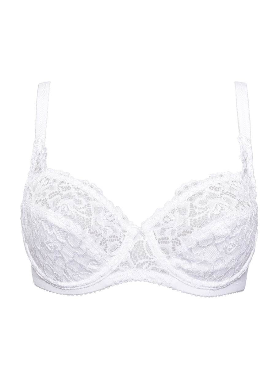 Reggiseno francese con ferretto, realizzato in morbido pizzo e foderato in cotone, con spalline regolabili.