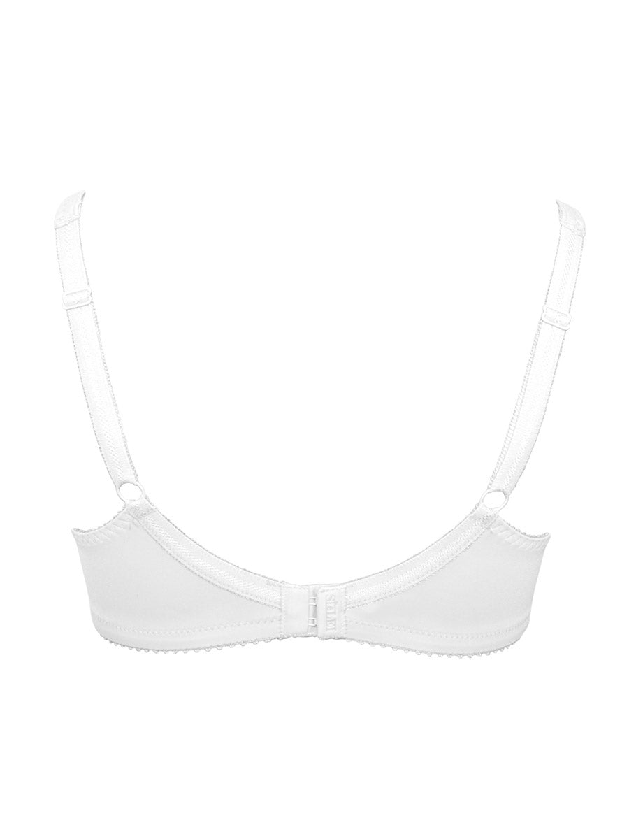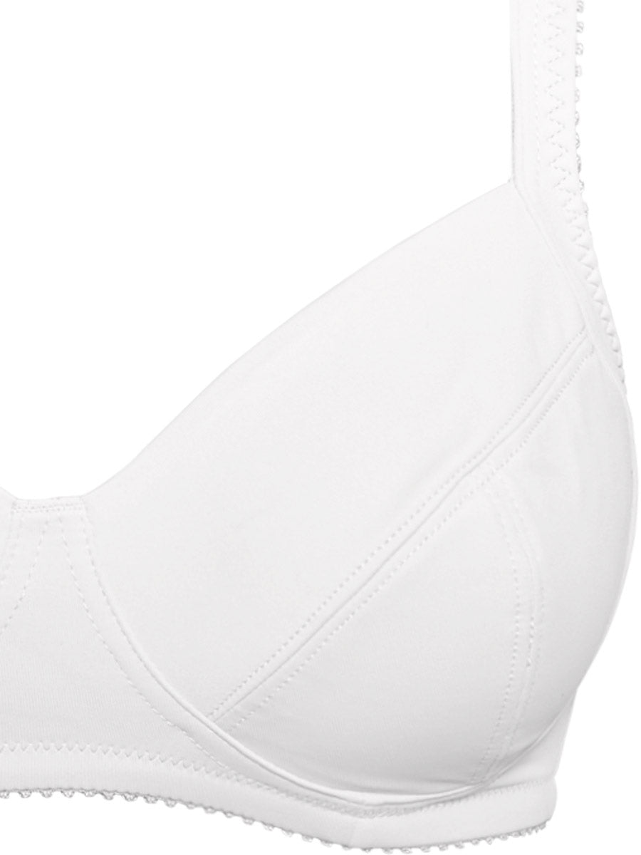 Reggiseno classico senza ferretto in microfibra stretch liscia. La realizzazione delle coppe con riprese, le doppiature interne in cotone ed il tessuto particolarmente sostenuto ne fanno un capo adatto alle curve più generose, senza il fastidio del ferretto.