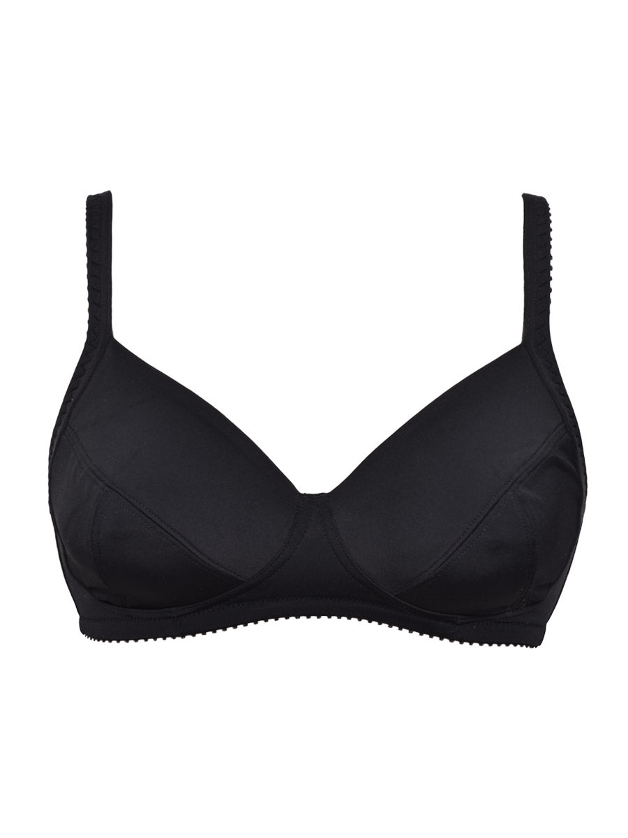 Reggiseno classico senza ferretto in microfibra stretch liscia. La realizzazione delle coppe con riprese, le doppiature interne in cotone ed il tessuto particolarmente sostenuto ne fanno un capo adatto alle curve più generose, senza il fastidio del ferretto.