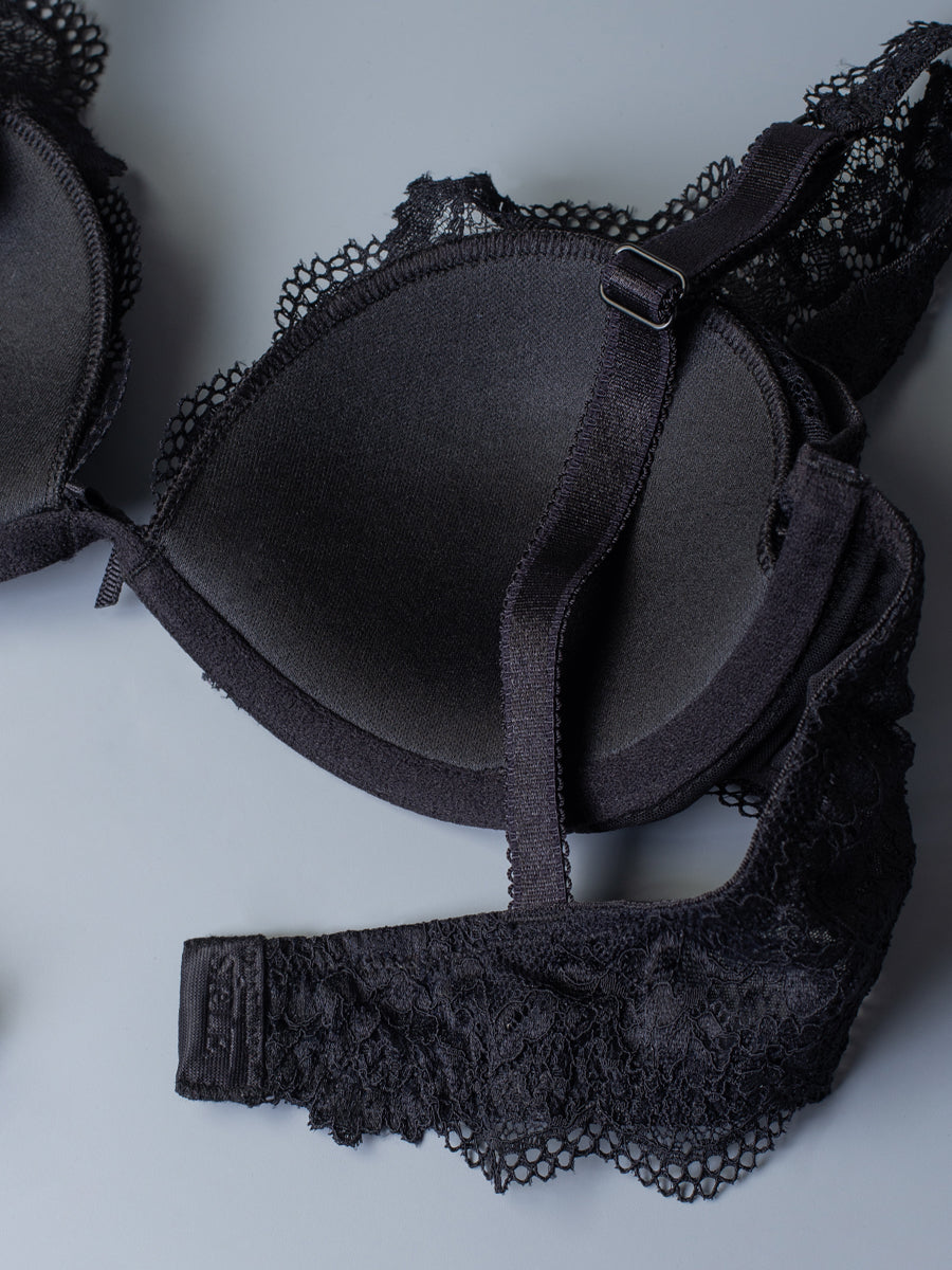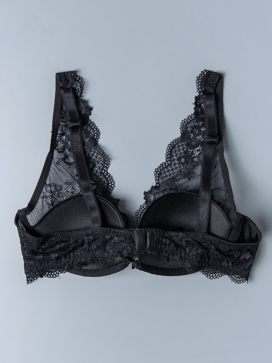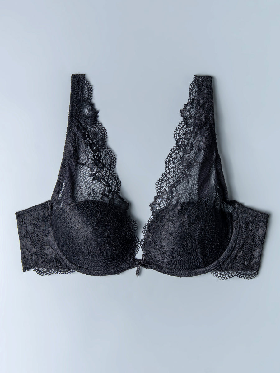 Di assoluta tendenza bralette con ferretto e coppe imbottite, interamente realizzata in soffice pizzo dal prezioso motivo floreale.