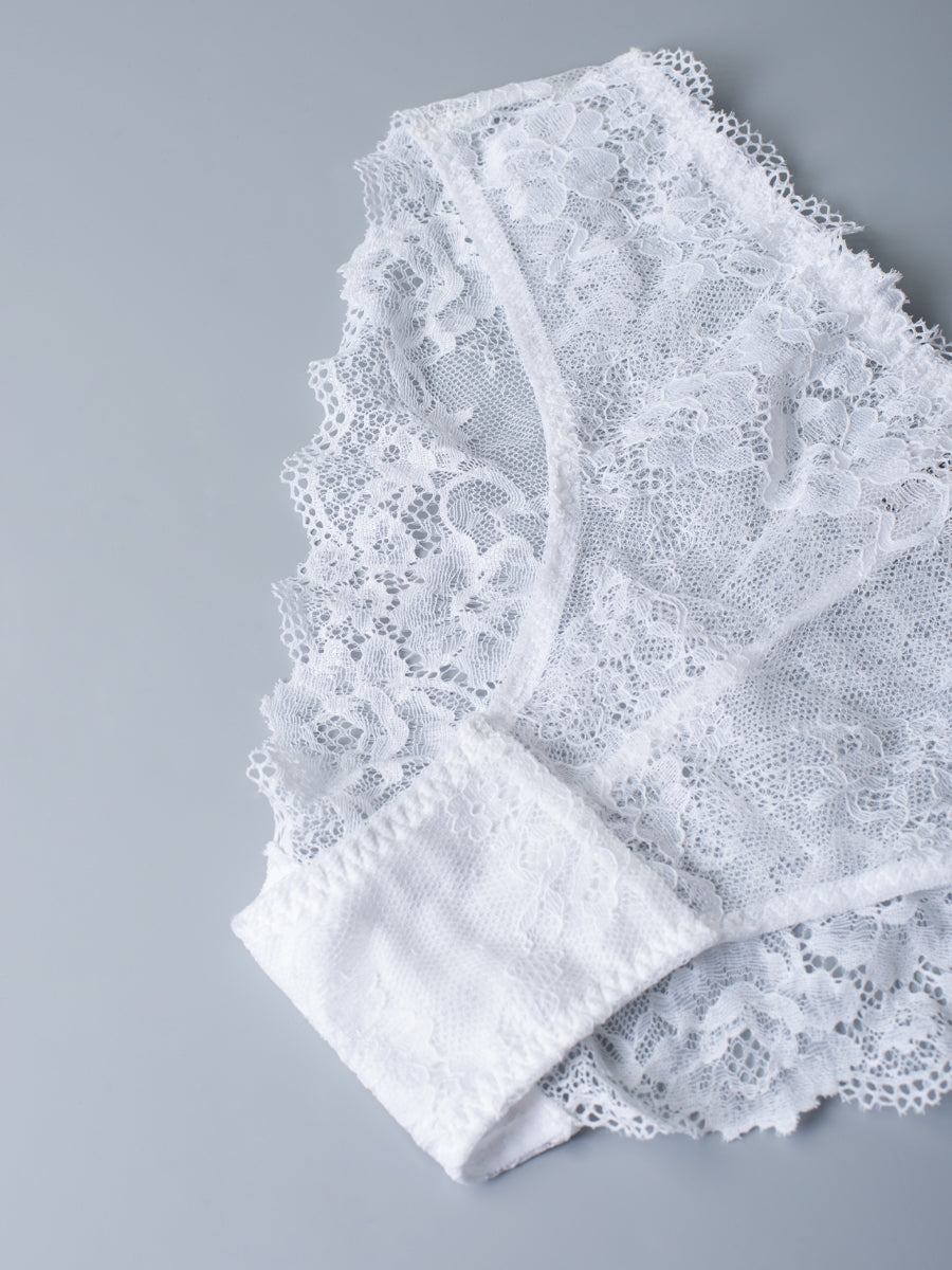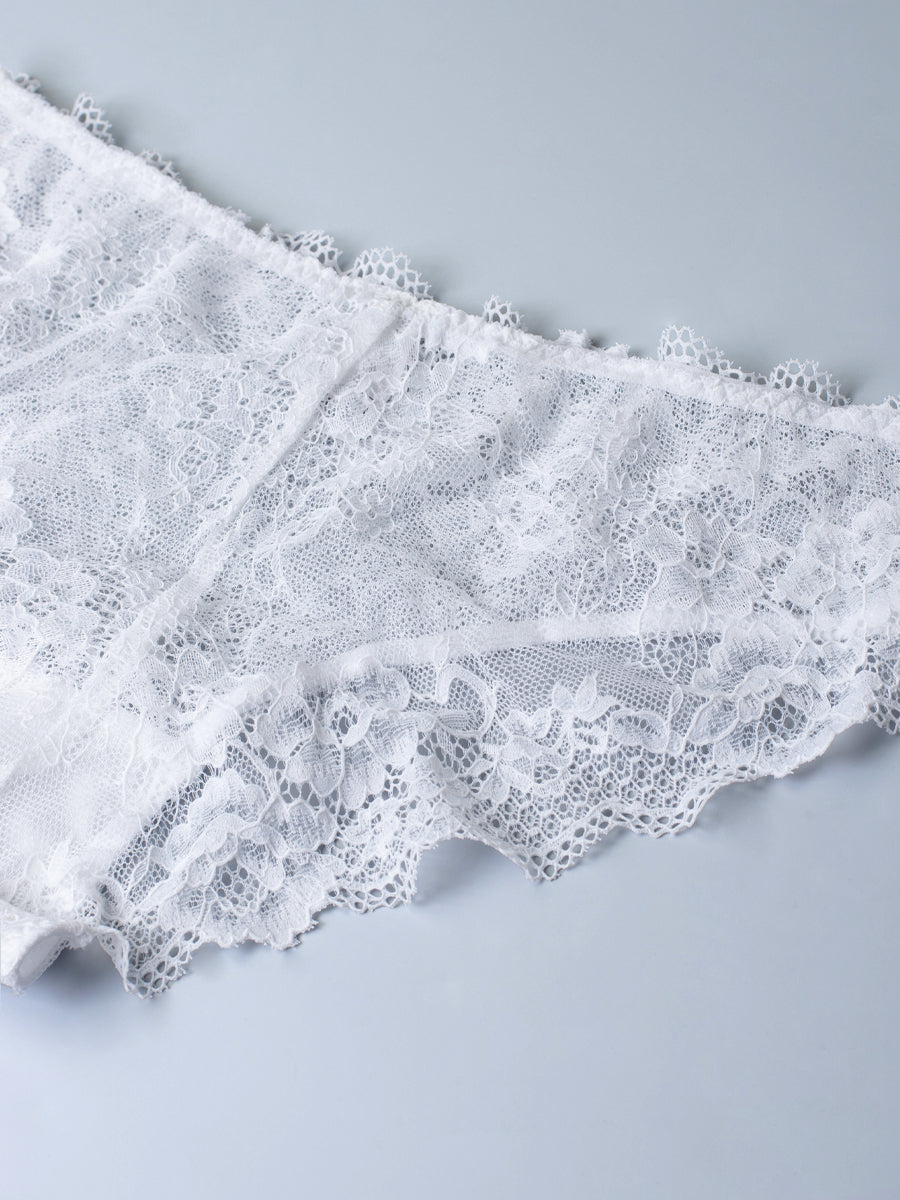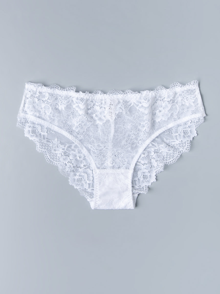 Slip in leggerissimo prezioso pizzo stretch dal motivo floreale. Modello con bordi smerlati sul retro.