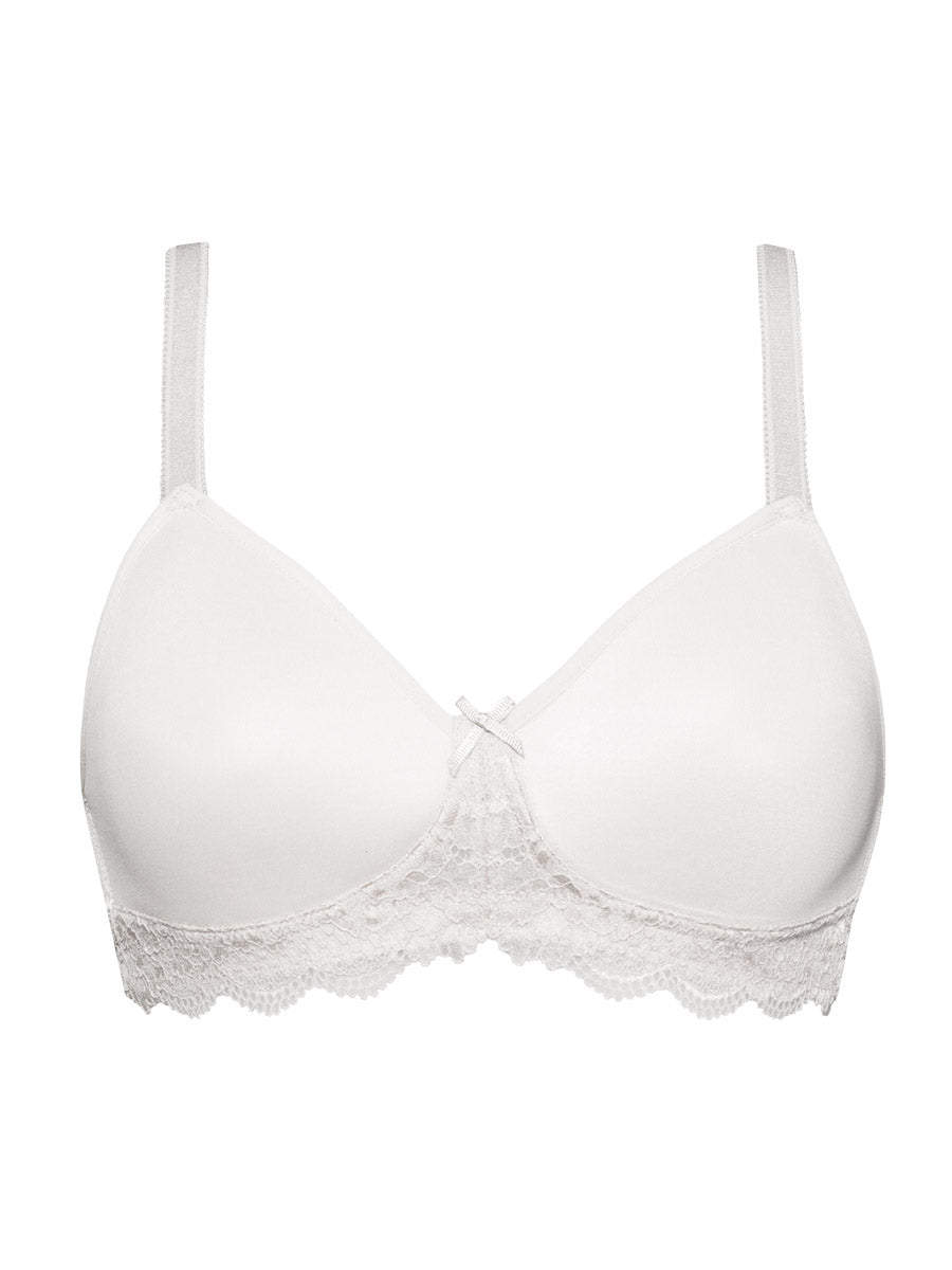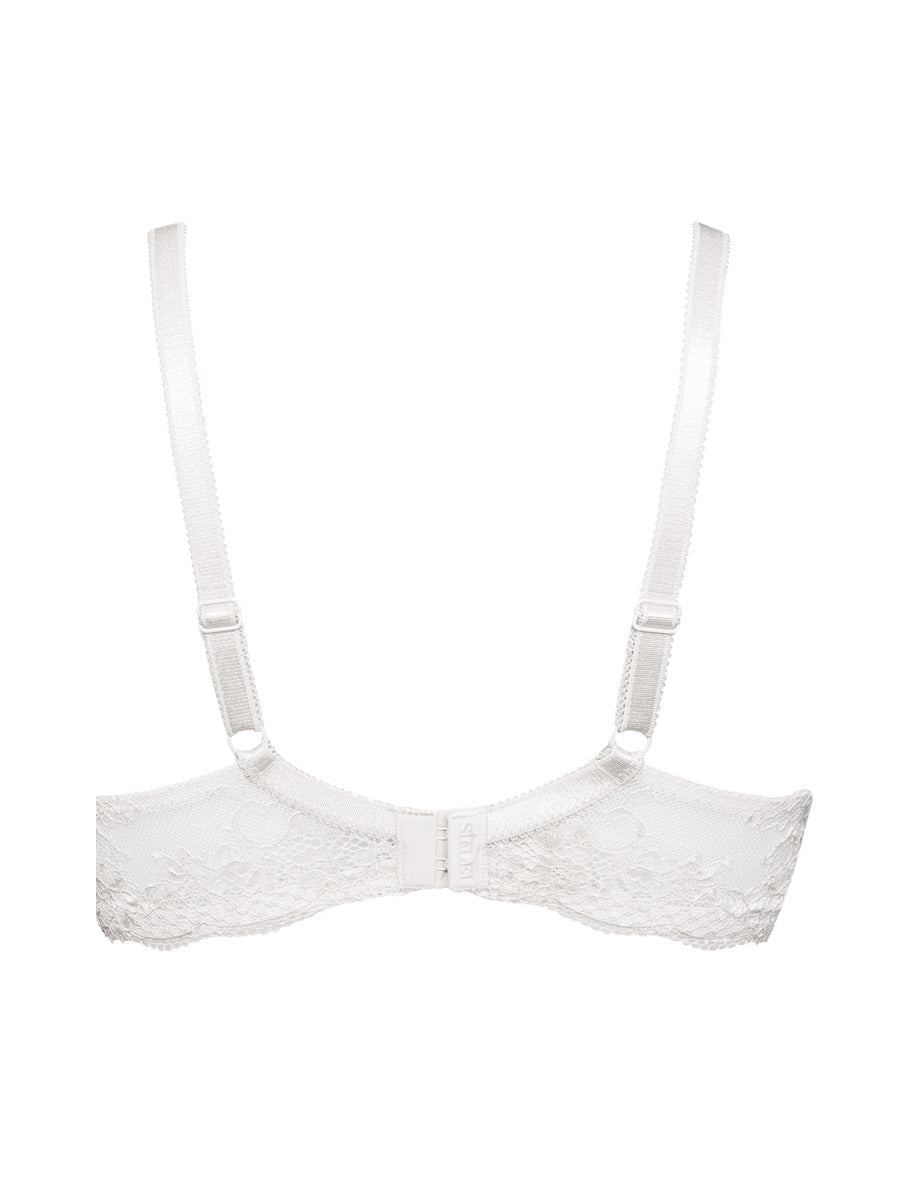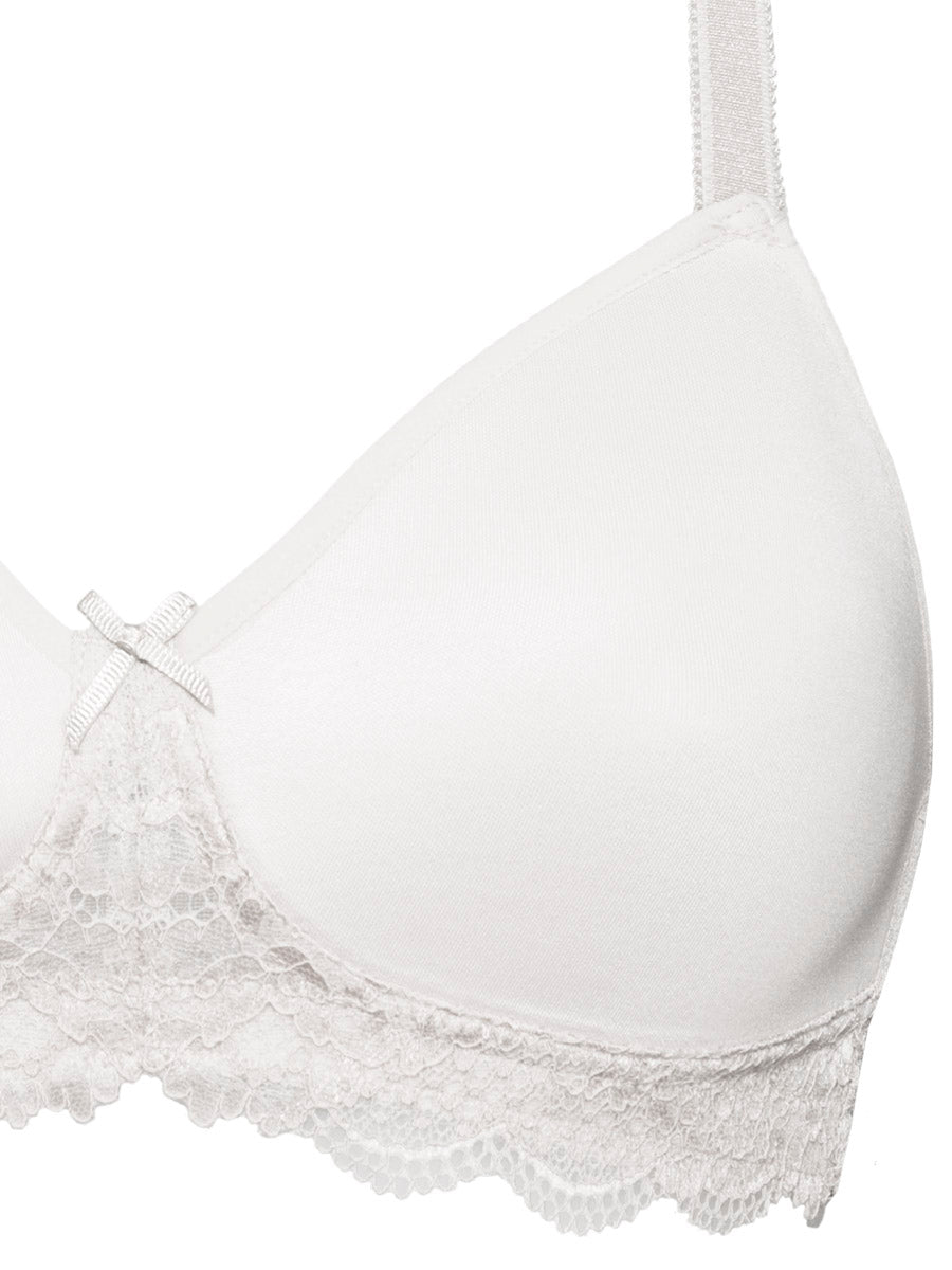 Reggiseno senza ferretto con "coppe spacer": massima traspirabilità e morbidezza a contatto con la pelle. Modello completo con torace in pizzo in tono e piccole stecche laterali. Regolatore supplementare per torace incluso.