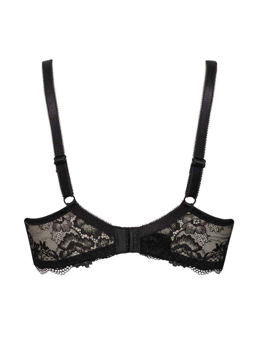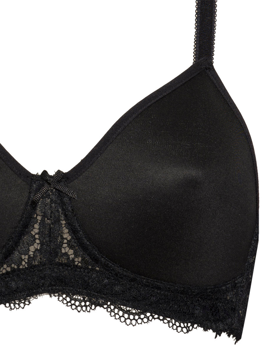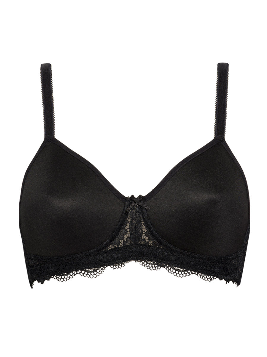 Reggiseno senza ferretto con "coppe spacer": massima traspirabilità e morbidezza a contatto con la pelle. Modello completo con torace in pizzo in tono e piccole stecche laterali. Regolatore supplementare per torace incluso.