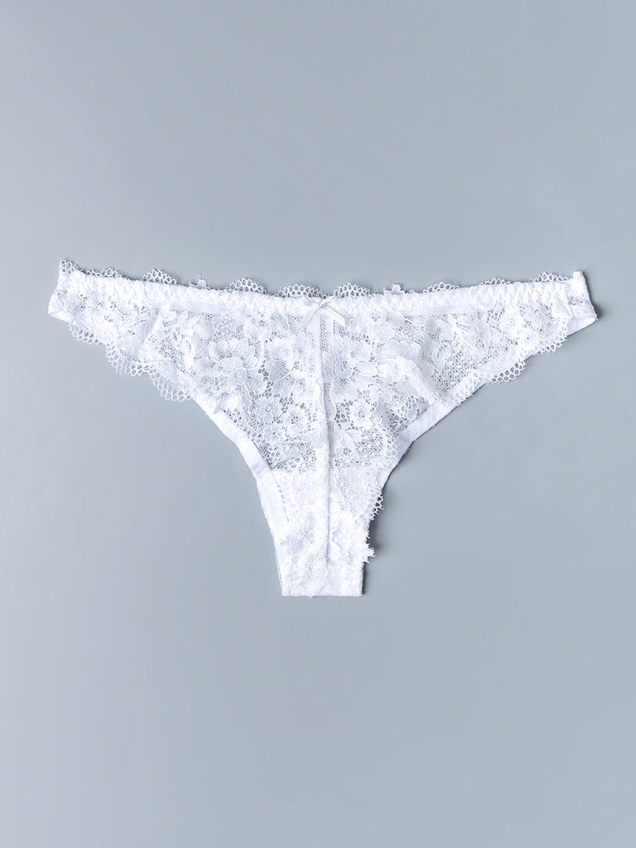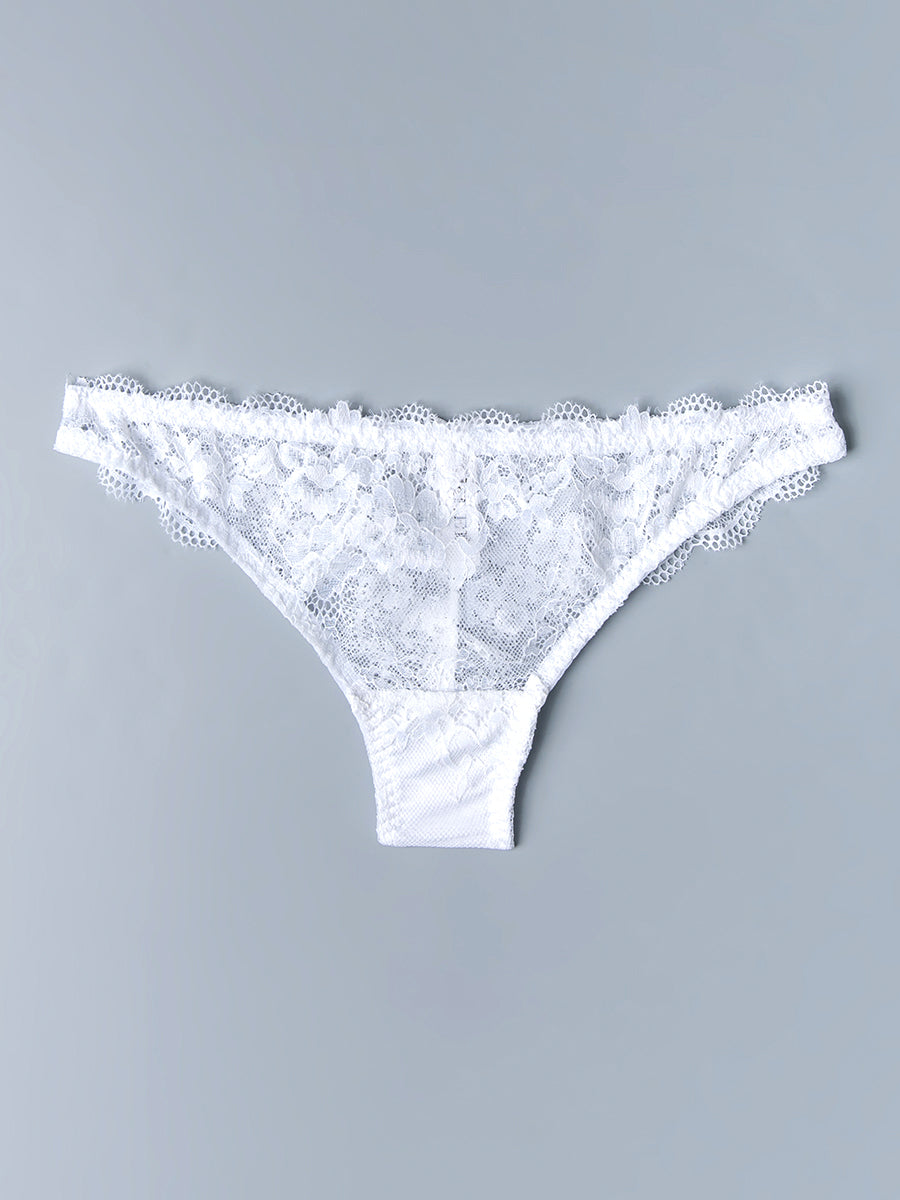 Sensuale brasiliana realizzata in raffinato pizzo stretch. Modello con bordi smerlati e cucitura centrale sul retro che assicura ottima vestibilità.