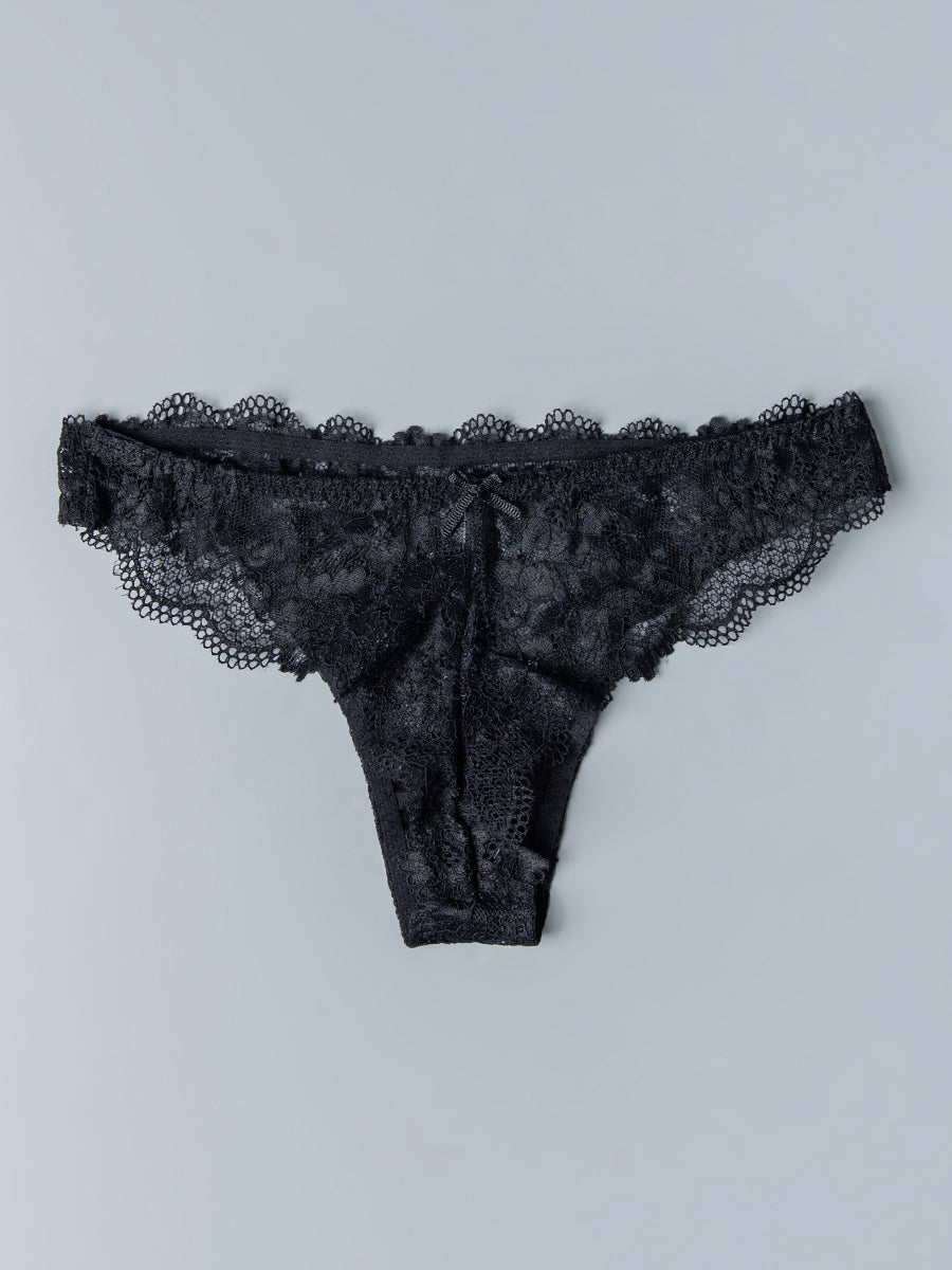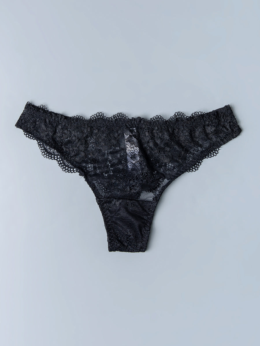 Sensuale brasiliana realizzata in raffinato pizzo stretch. Modello con bordi smerlati e cucitura centrale sul retro che assicura ottima vestibilità.