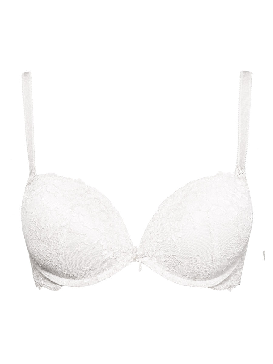 Push-up in pizzo con ferretto e coppe graduate aria-gel: valorizza il decolletè con leggerezza.