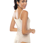 Canotta semplice con spalline sottili in cotone bio. Morbida e versatile, da usare anche come sottogiacca, è disponibile in 5 colori