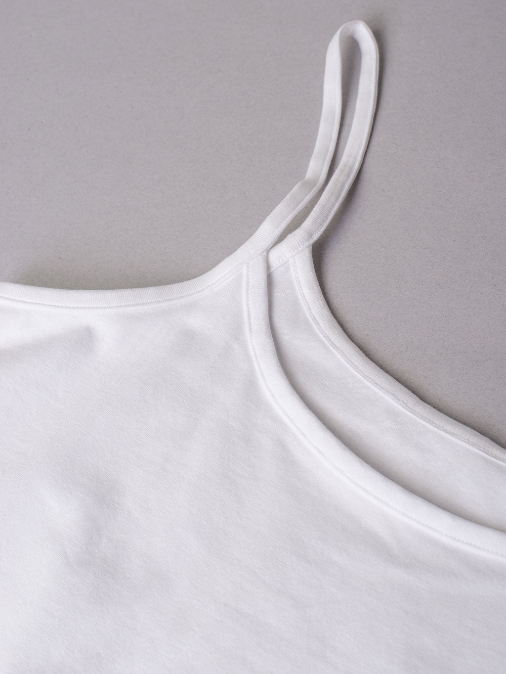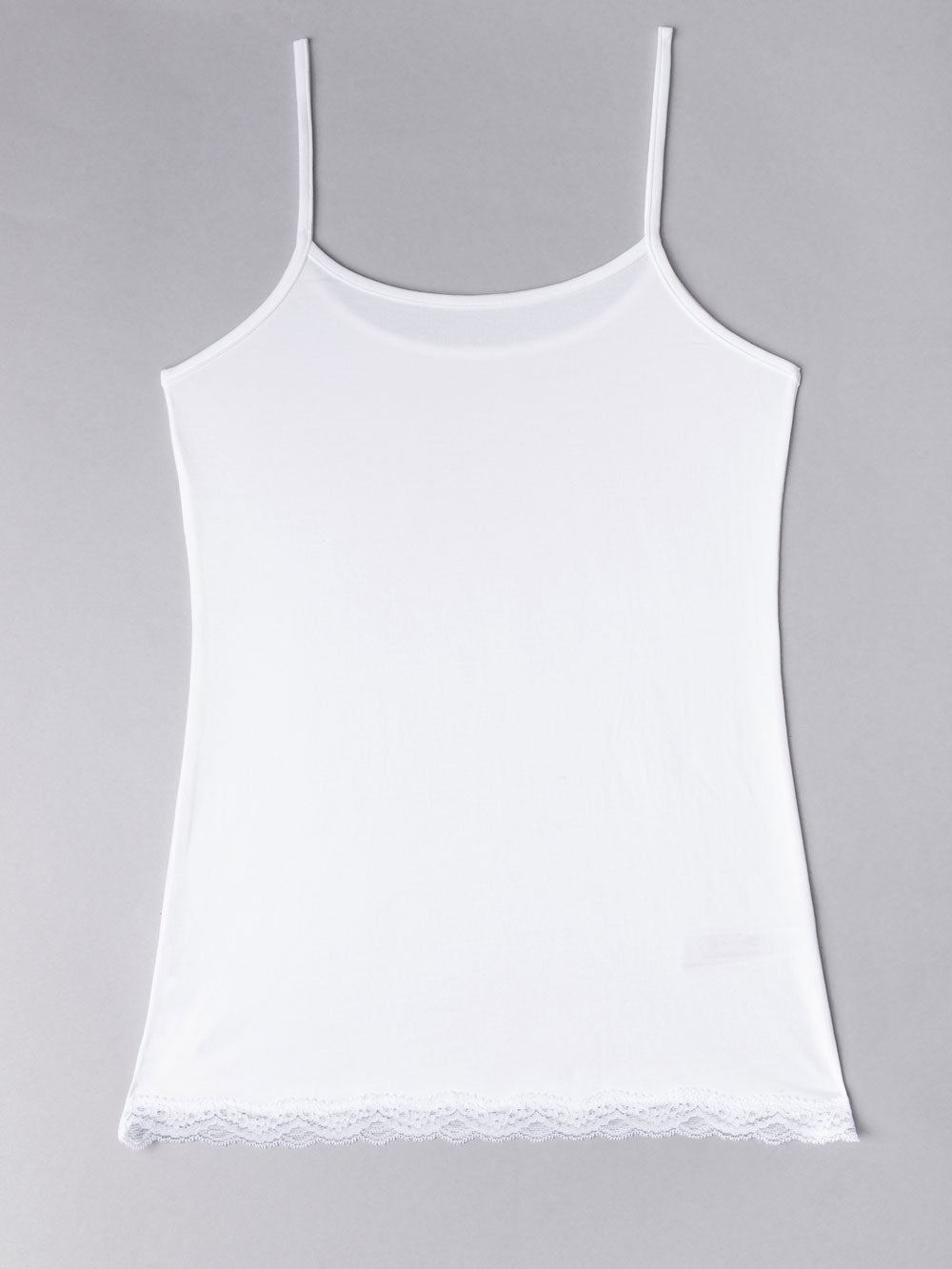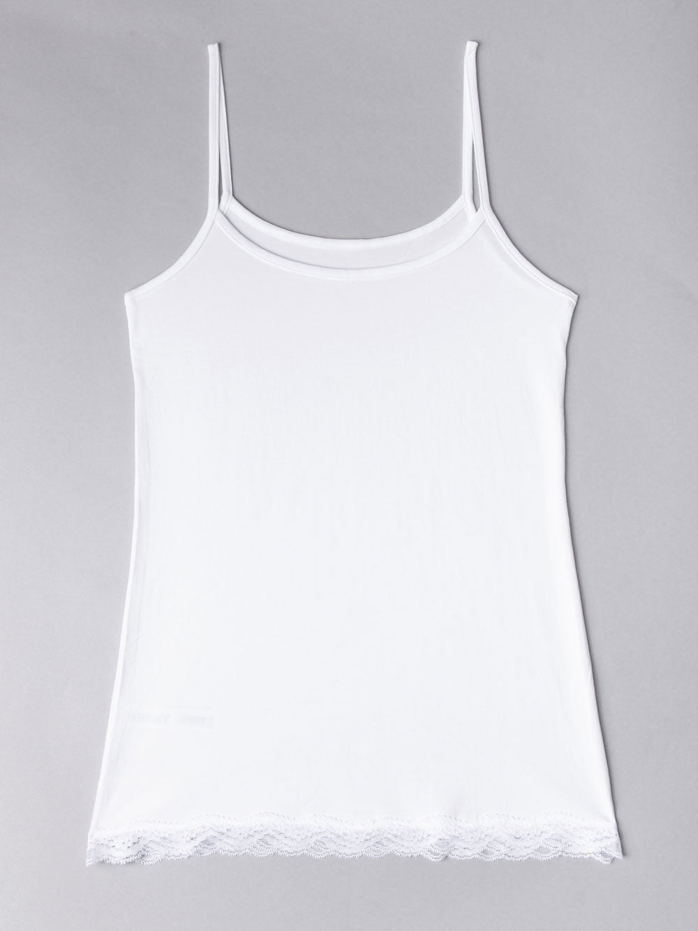 Canotta semplice con spalline sottili e rifinita in delicato pizzo. in cotone bio e disponibile in 5 colori