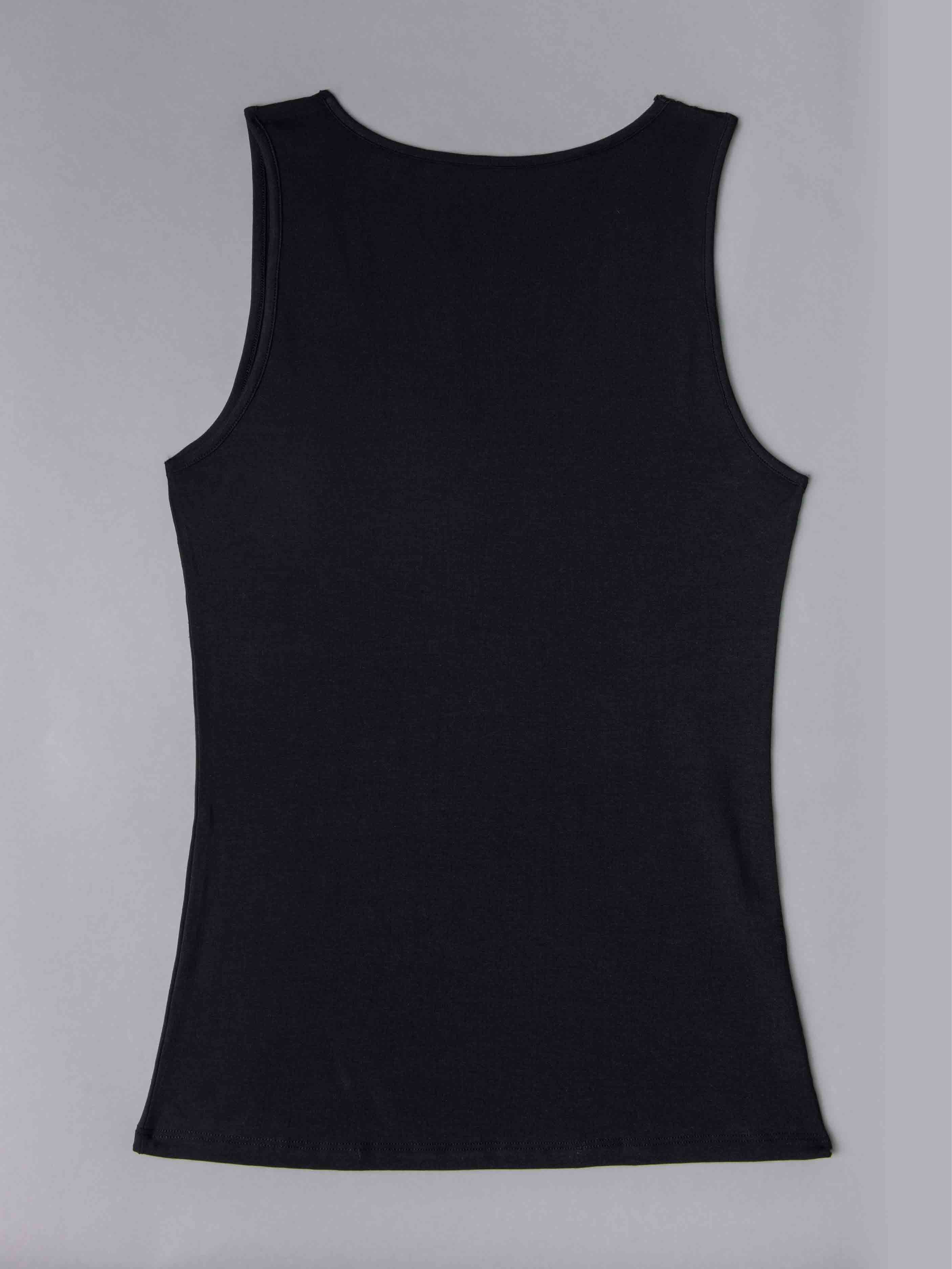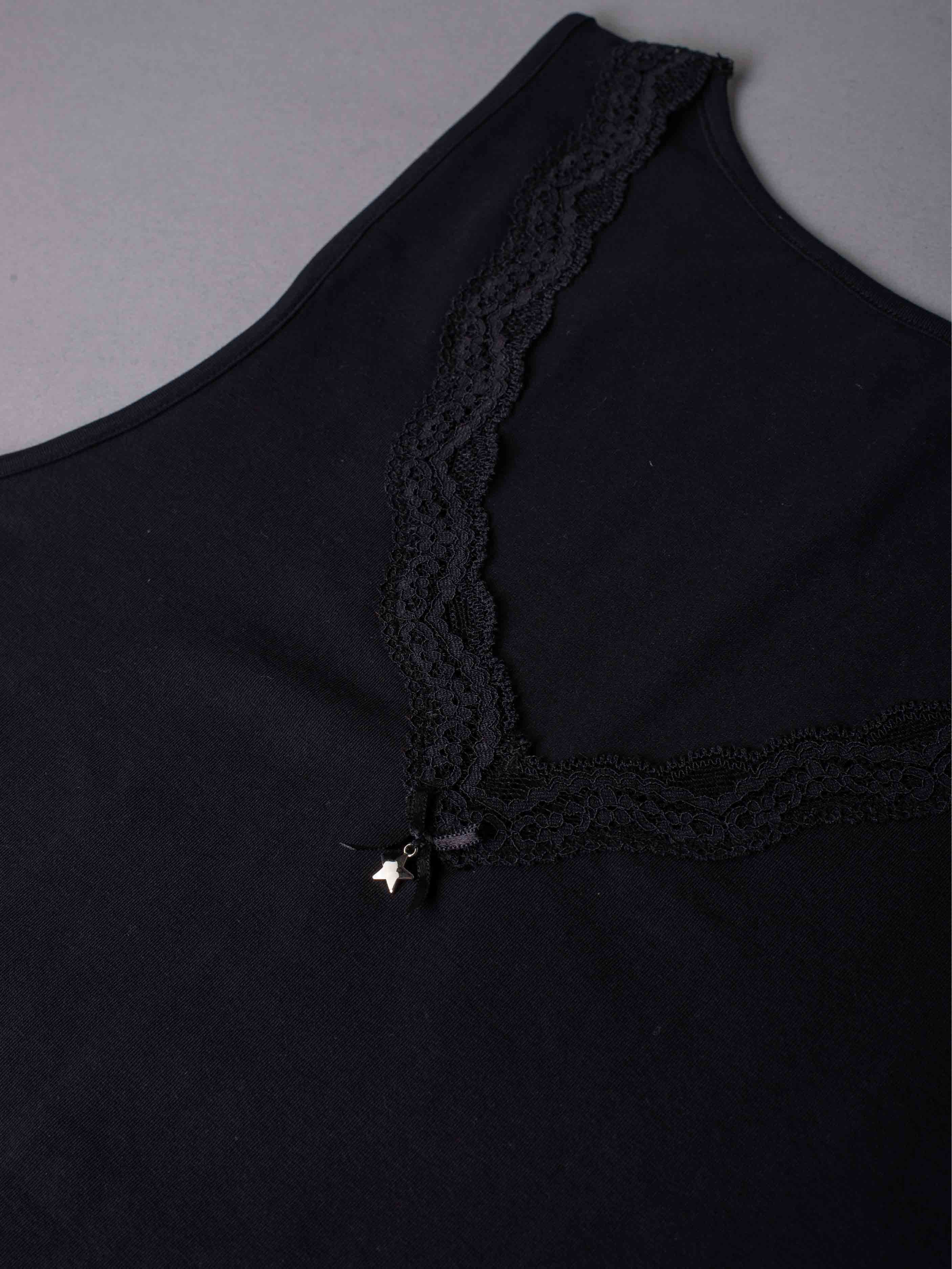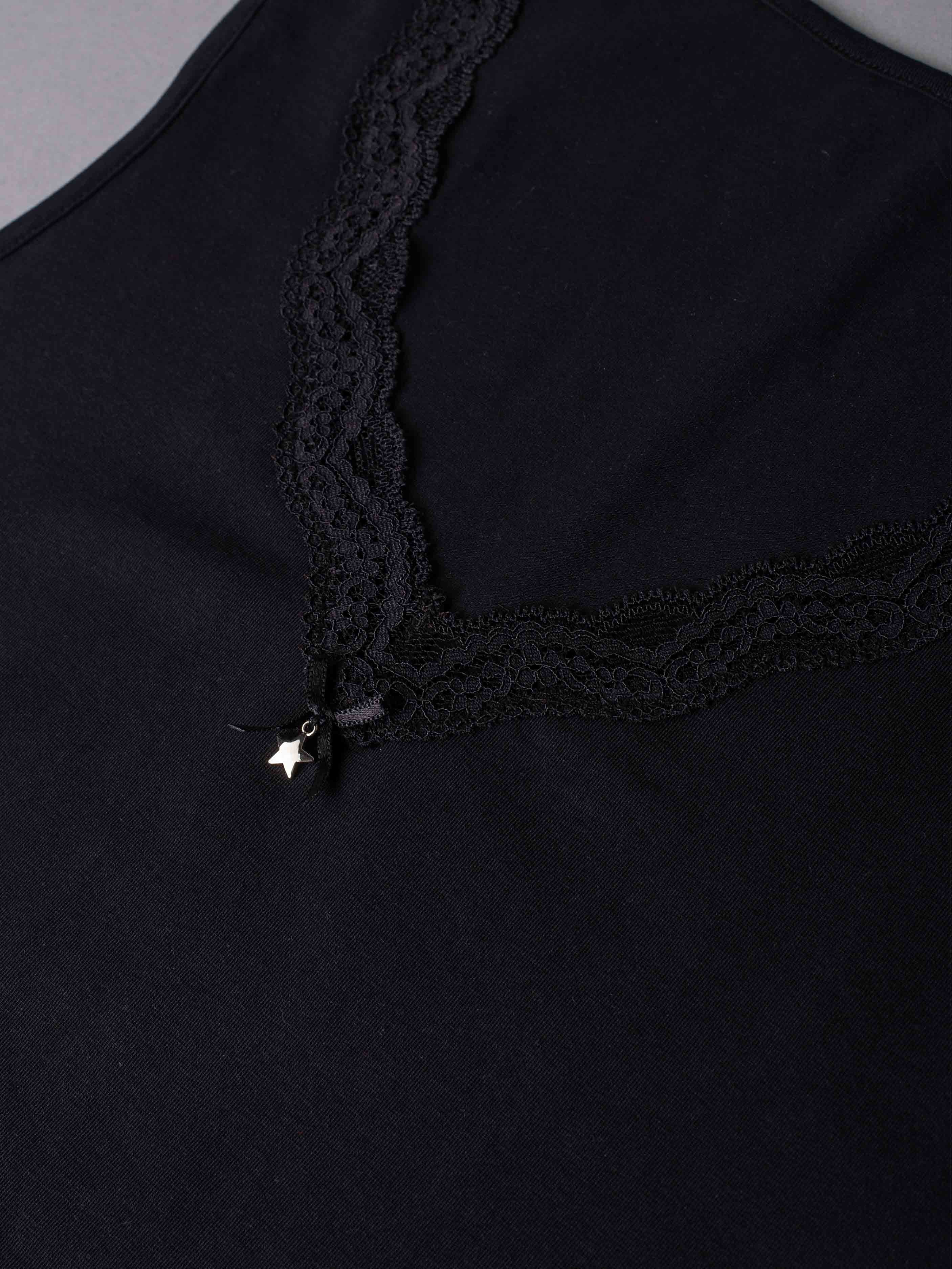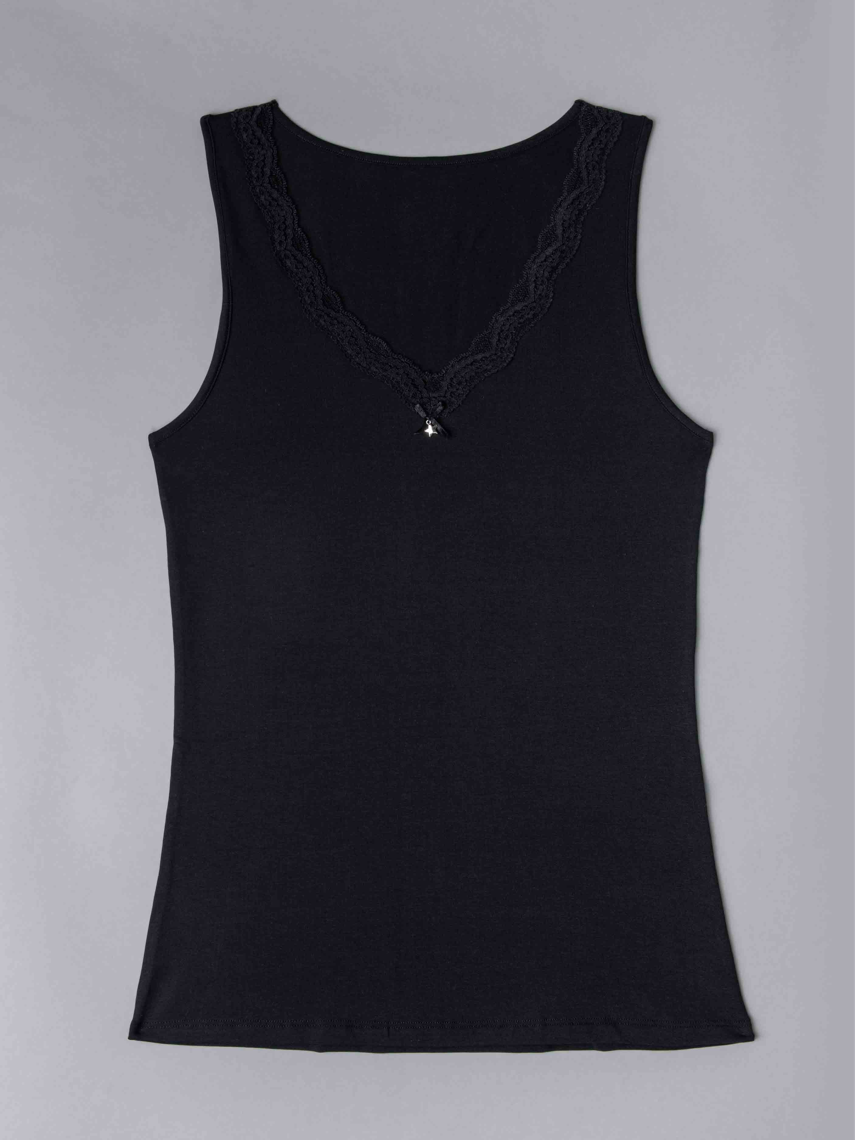 Canotta spalla larga, scollo a V con pizzo - NERO - 1436