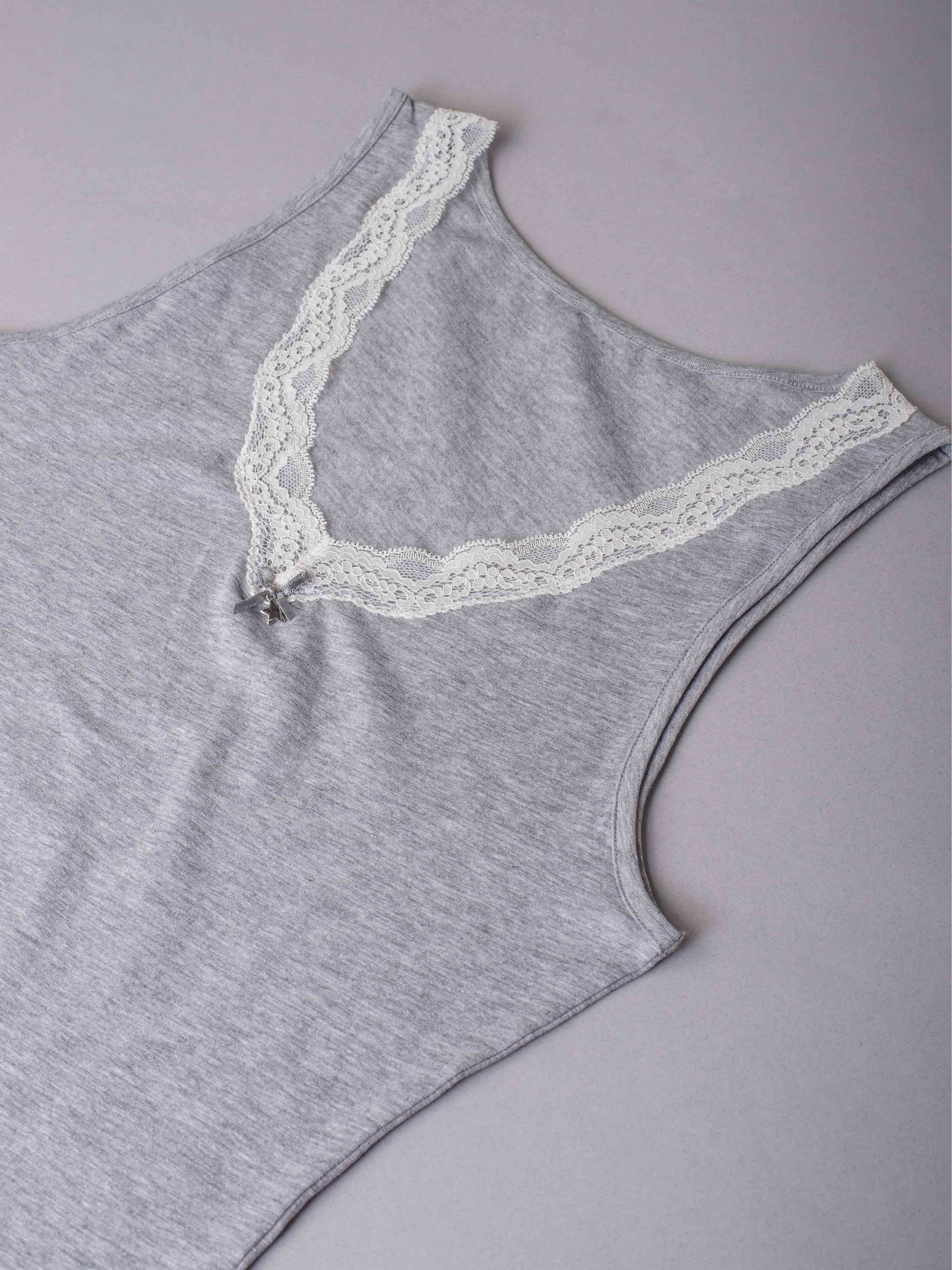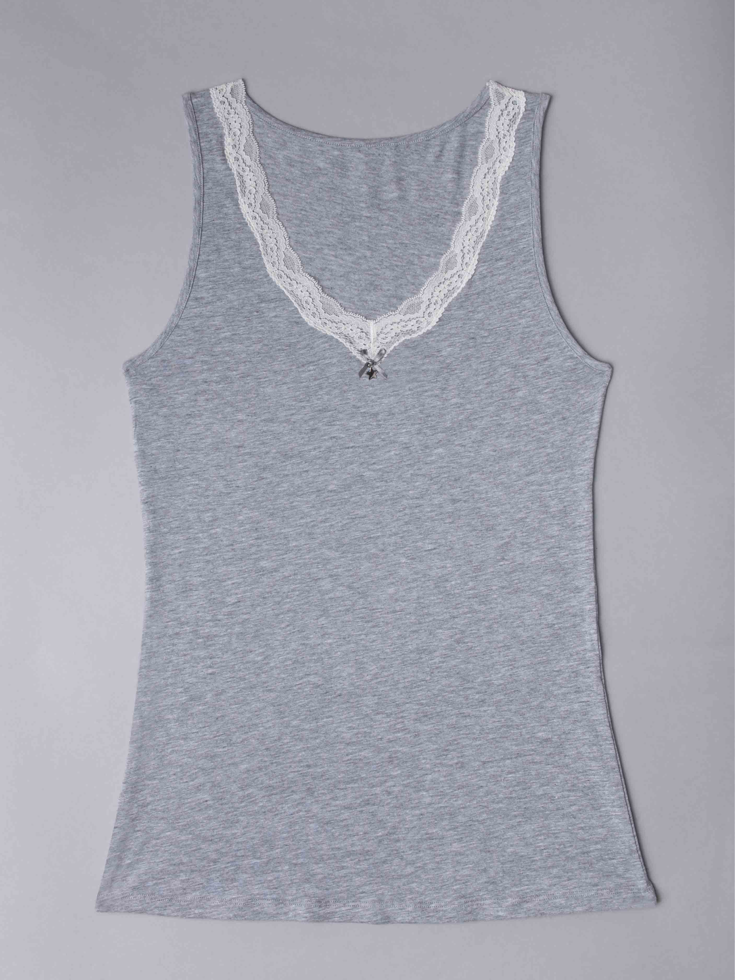 Canotta spalla larga, scollo a V con pizzo - GRIGIO MELANGE - 1436
