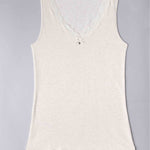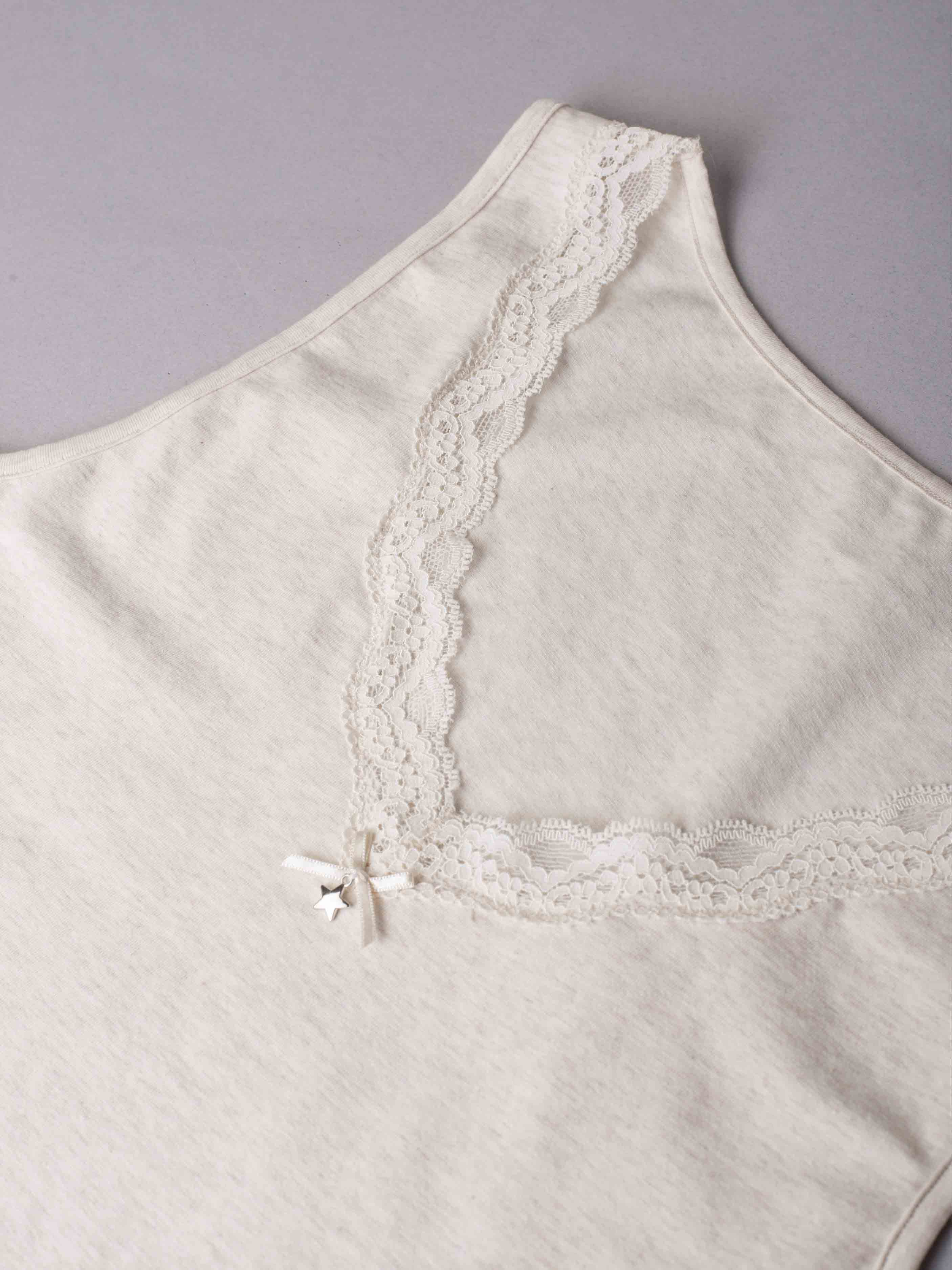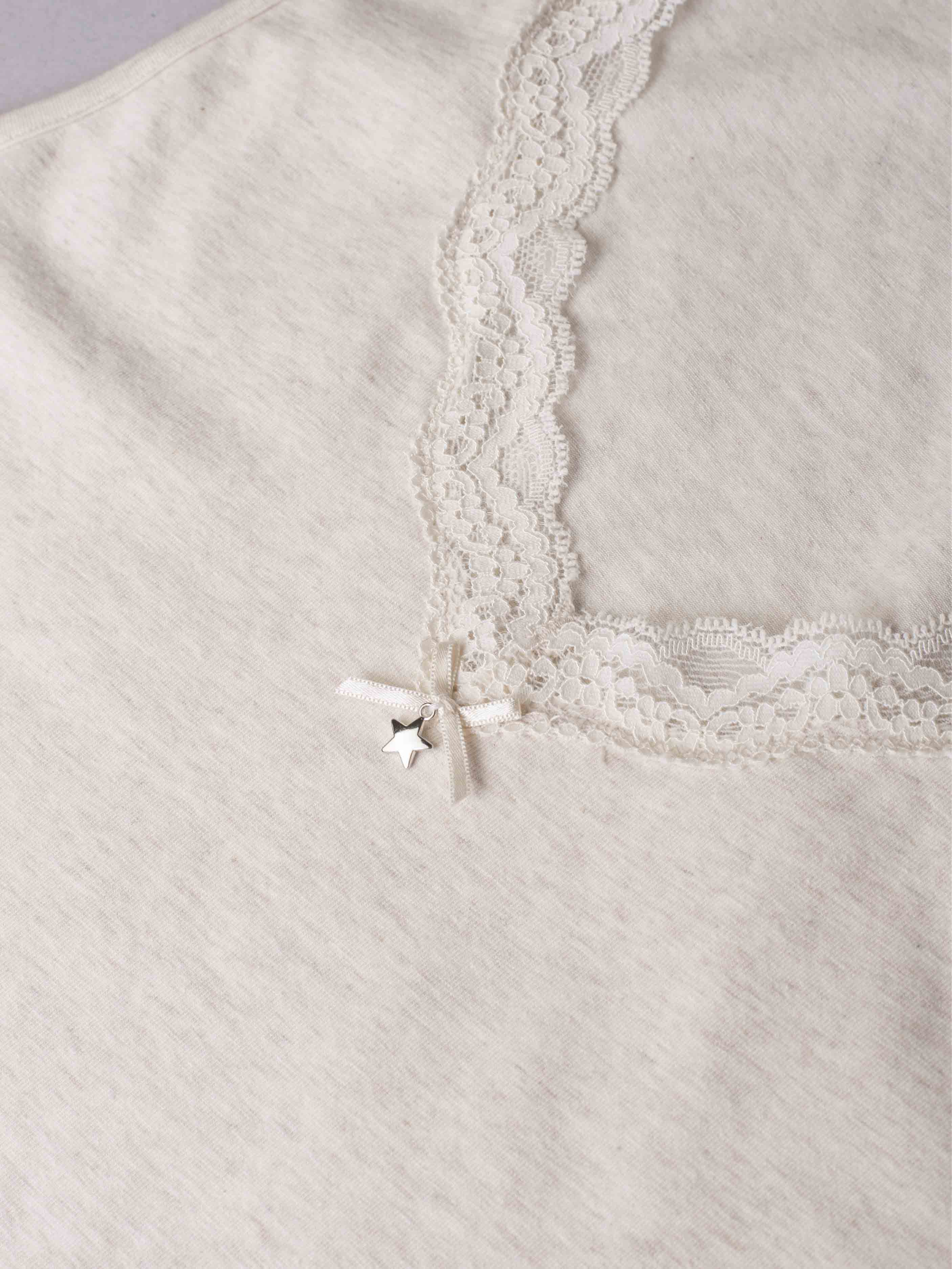 Canotta spalla larga, scollo a V con pizzo - ECRU MELANGE - 1436