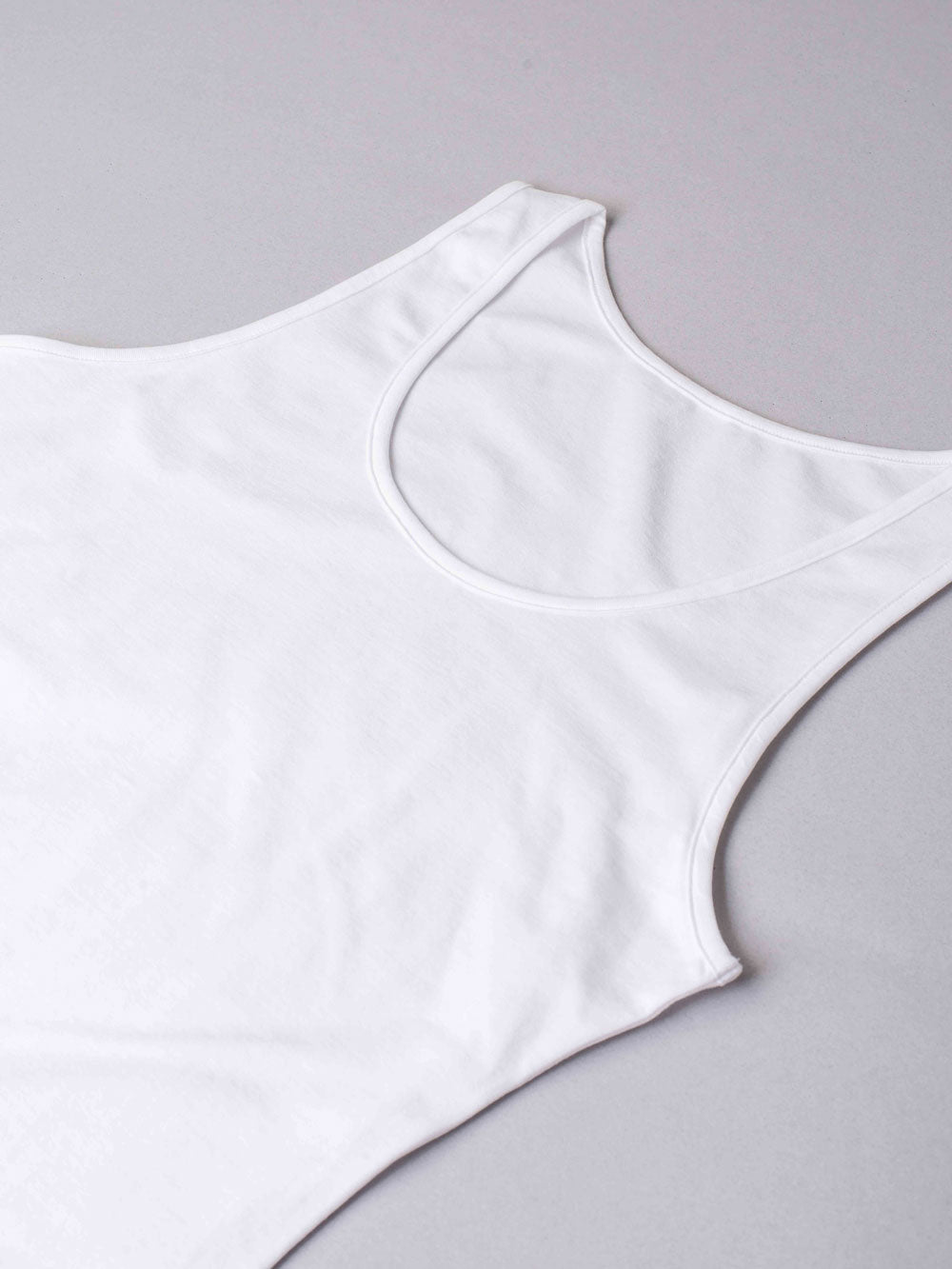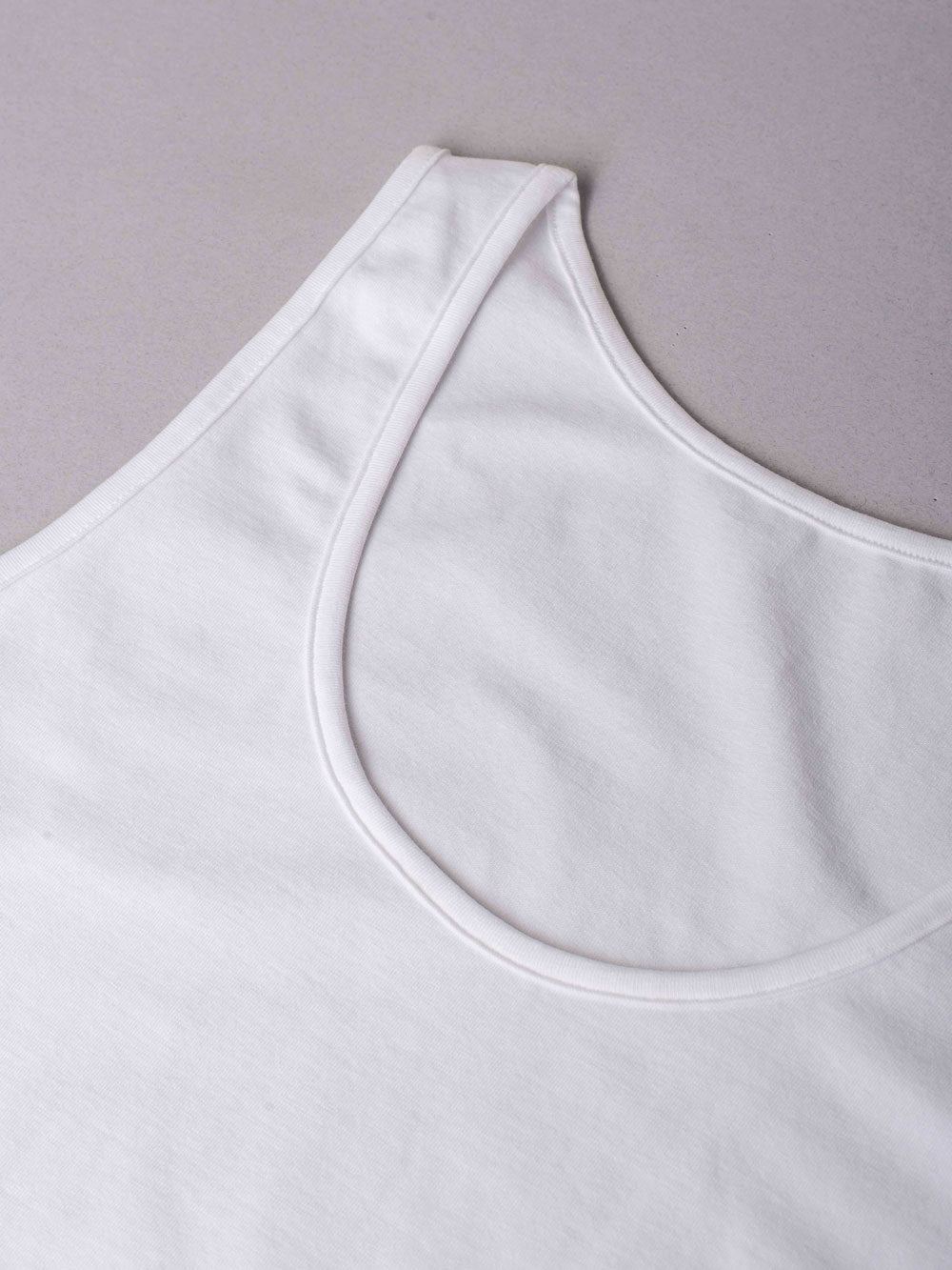 Canotta con spalla larga e scollo tondo, in cotone bio. Morbida, confortevole e disponibile in 5 colori