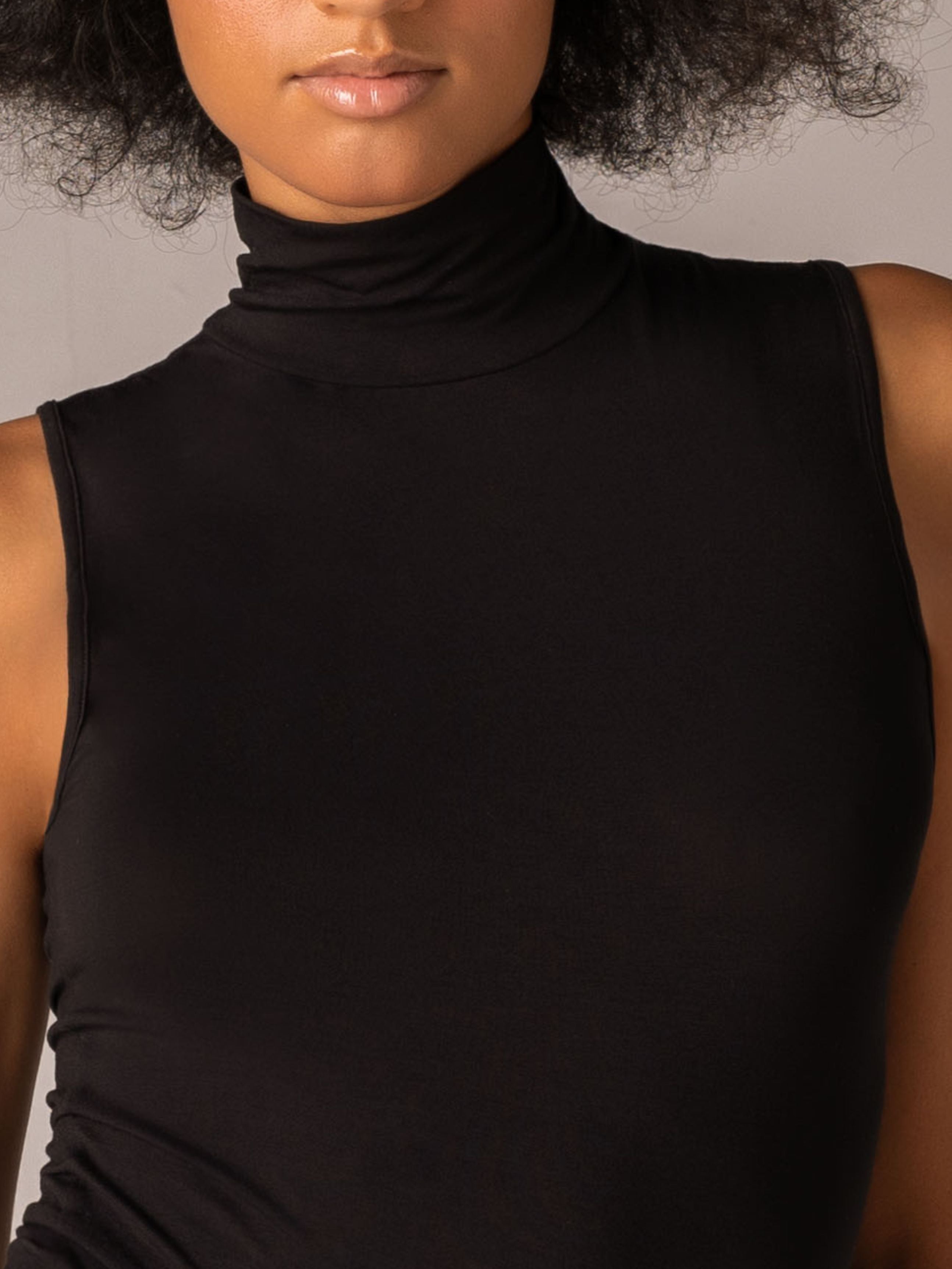 Lupetto Smanicato Collo Alto in Modal - NERO - 6006