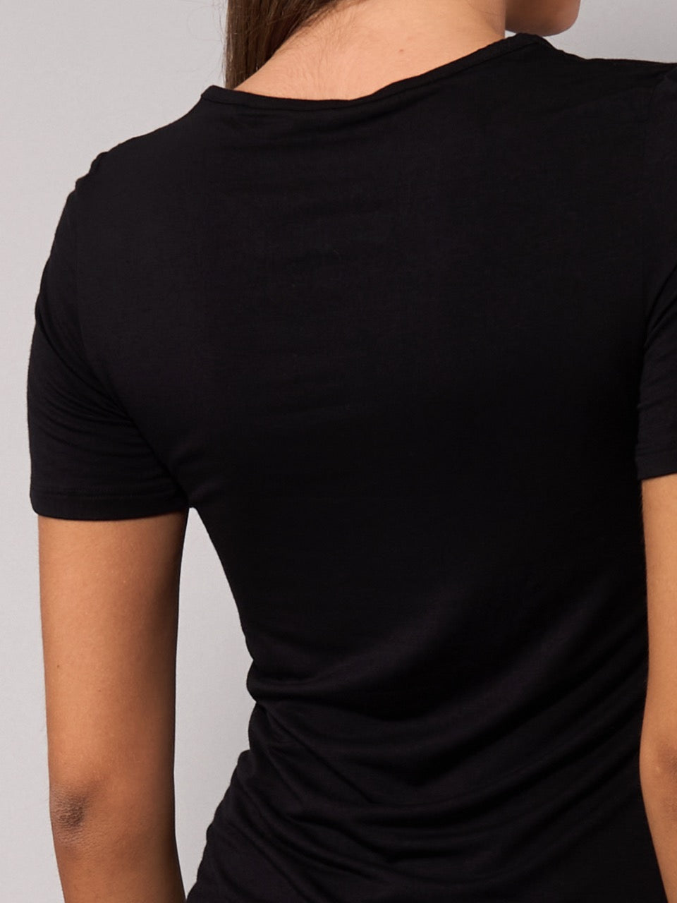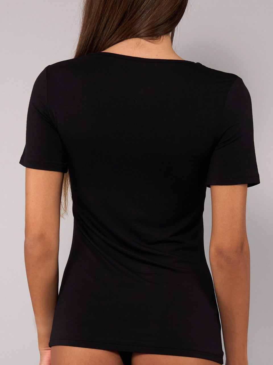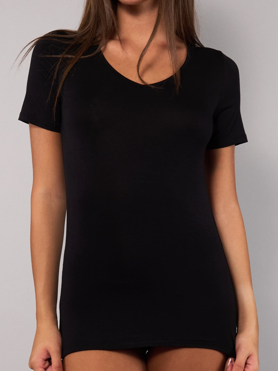 Maglia Manica Corta Scollo a V in Modal - NERO - 6008