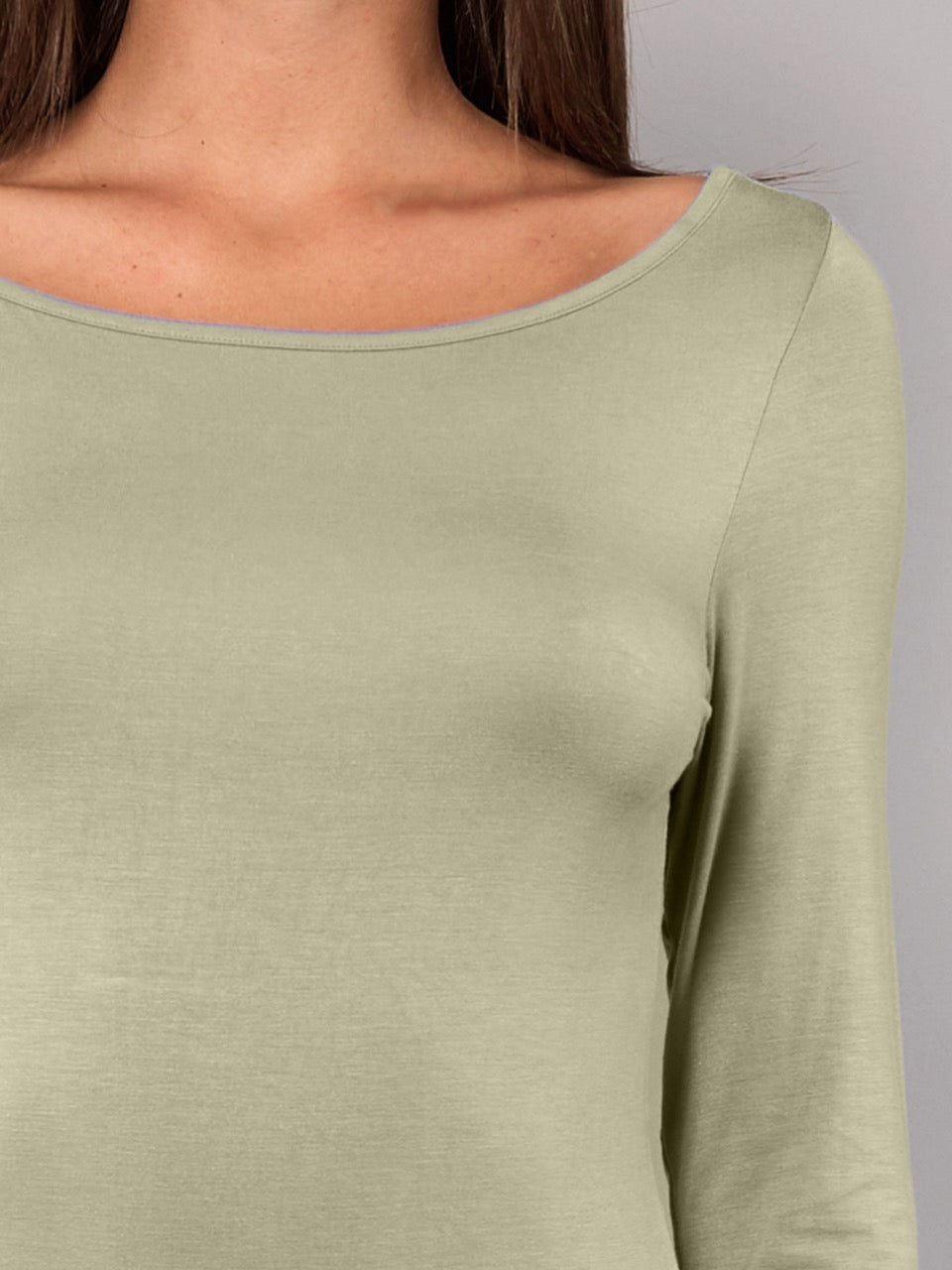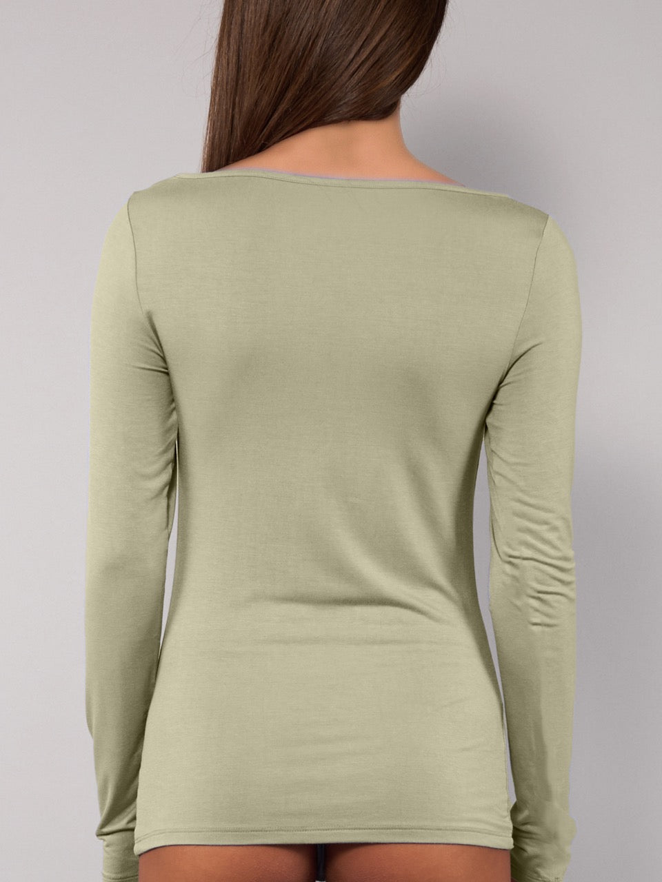 Maglia Manica Lunga Scollo a Barchetta in Modal - VERDE MILITARE - 6014