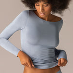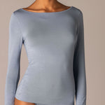 Maglia Manica Lunga Scollo a Barchetta in Modal - DENIM - 6014