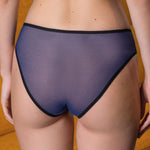 Lo slip classico è un capo intramontabile che unisce comfort e stile raffinato. Realizzato in tulle floccato con rose e finiture a contrasto, è perfetto per completare il look coordinato della serie.