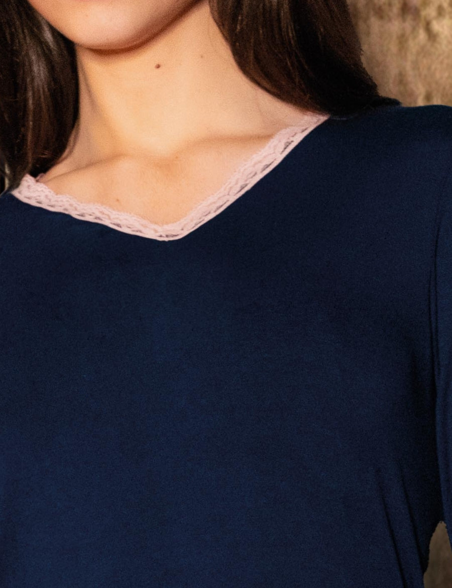 Camicia da notte scollo a V L 90 - BLUE - 7 - BLUE - LI22